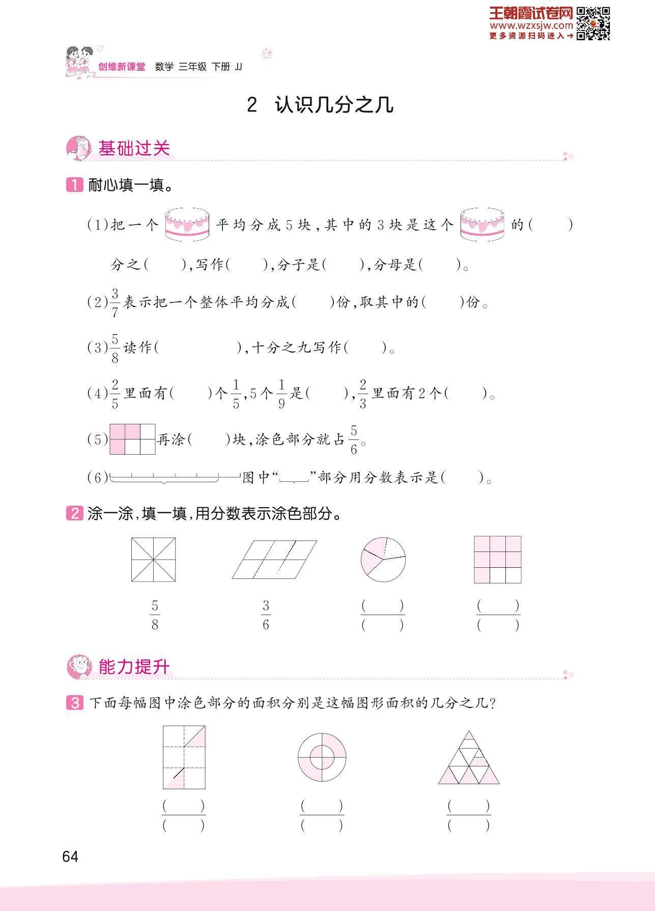 2023下册三年级数学冀教版 八 分数的初步认识——2 认识几分之几