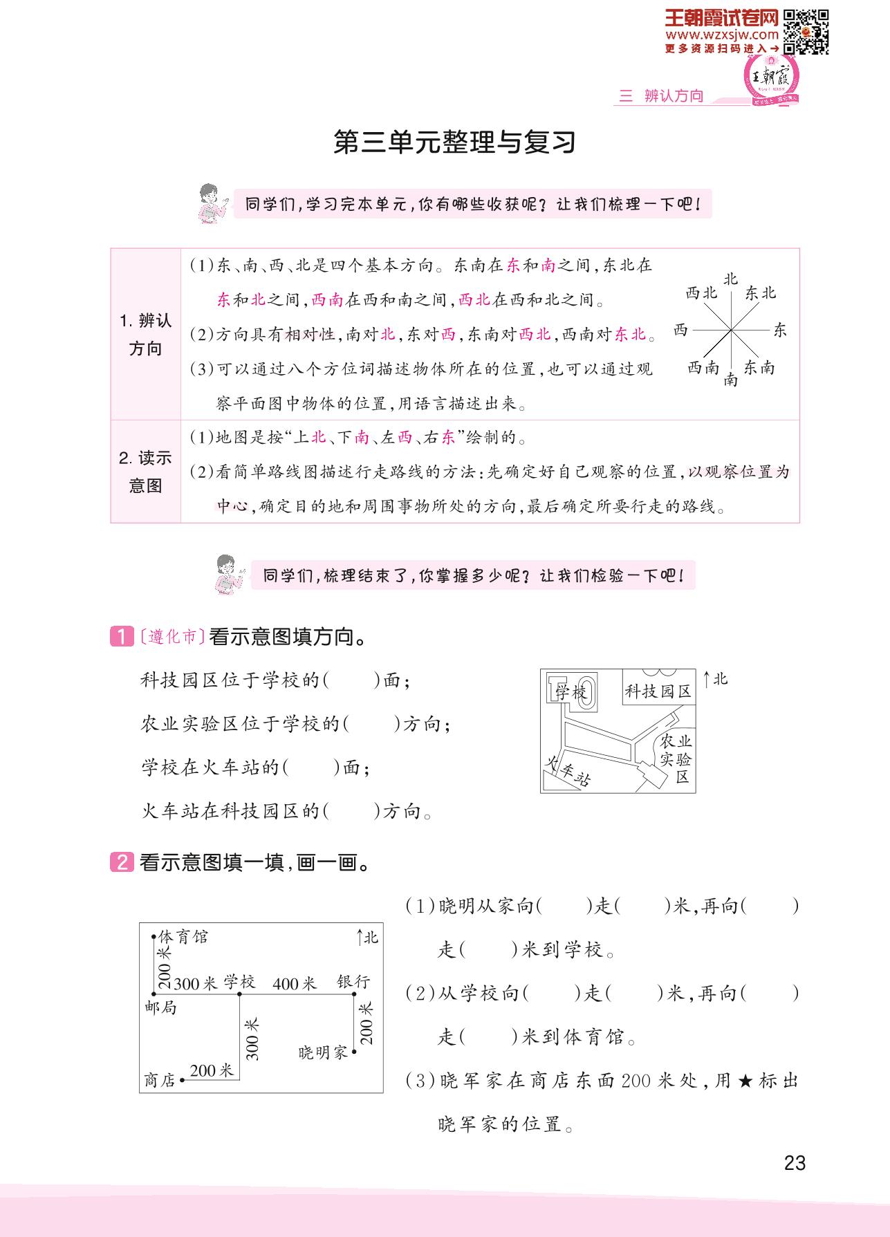 2023下册三年级数学冀教版 第三单元整理与复习