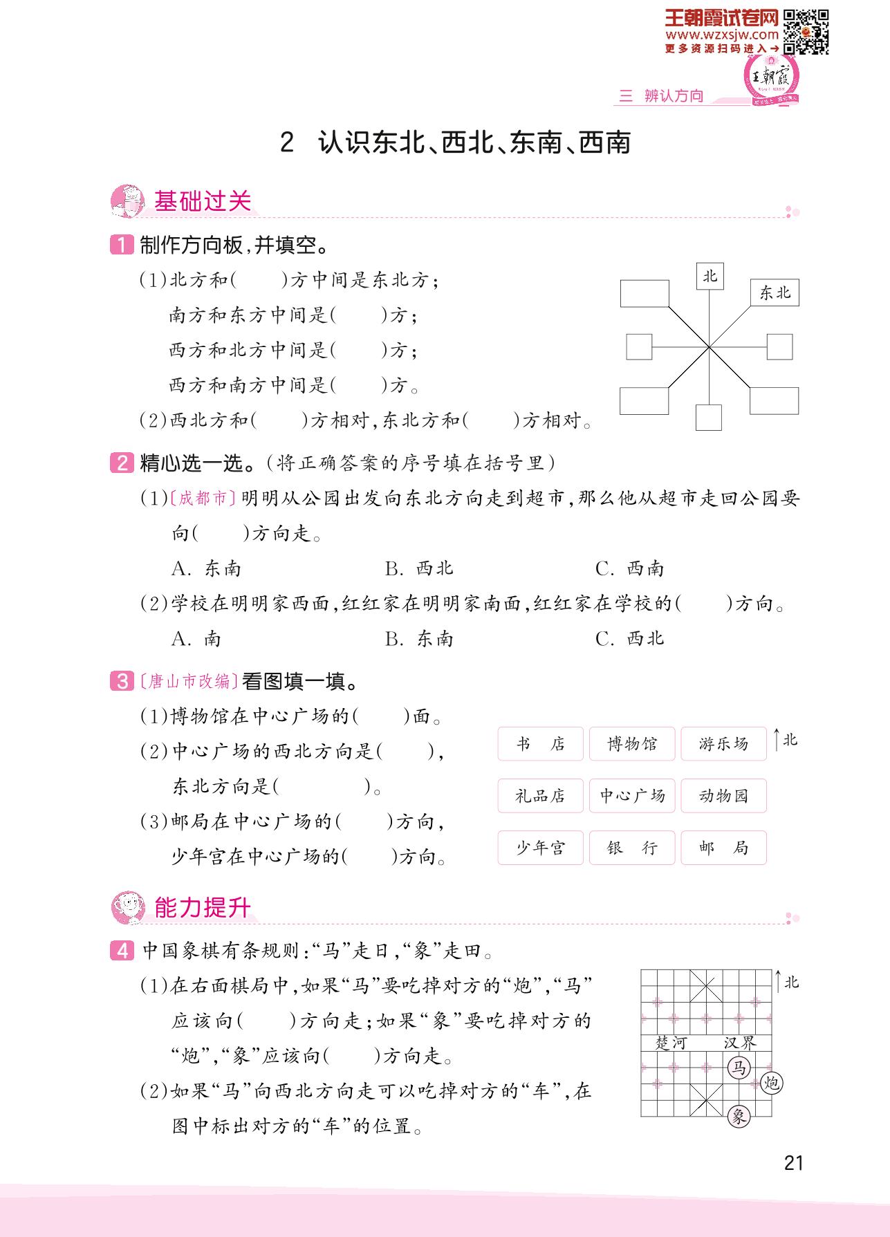 2023下册三年级数学冀教版 三 辨认方向——2 认识东北、西北、东南、西南