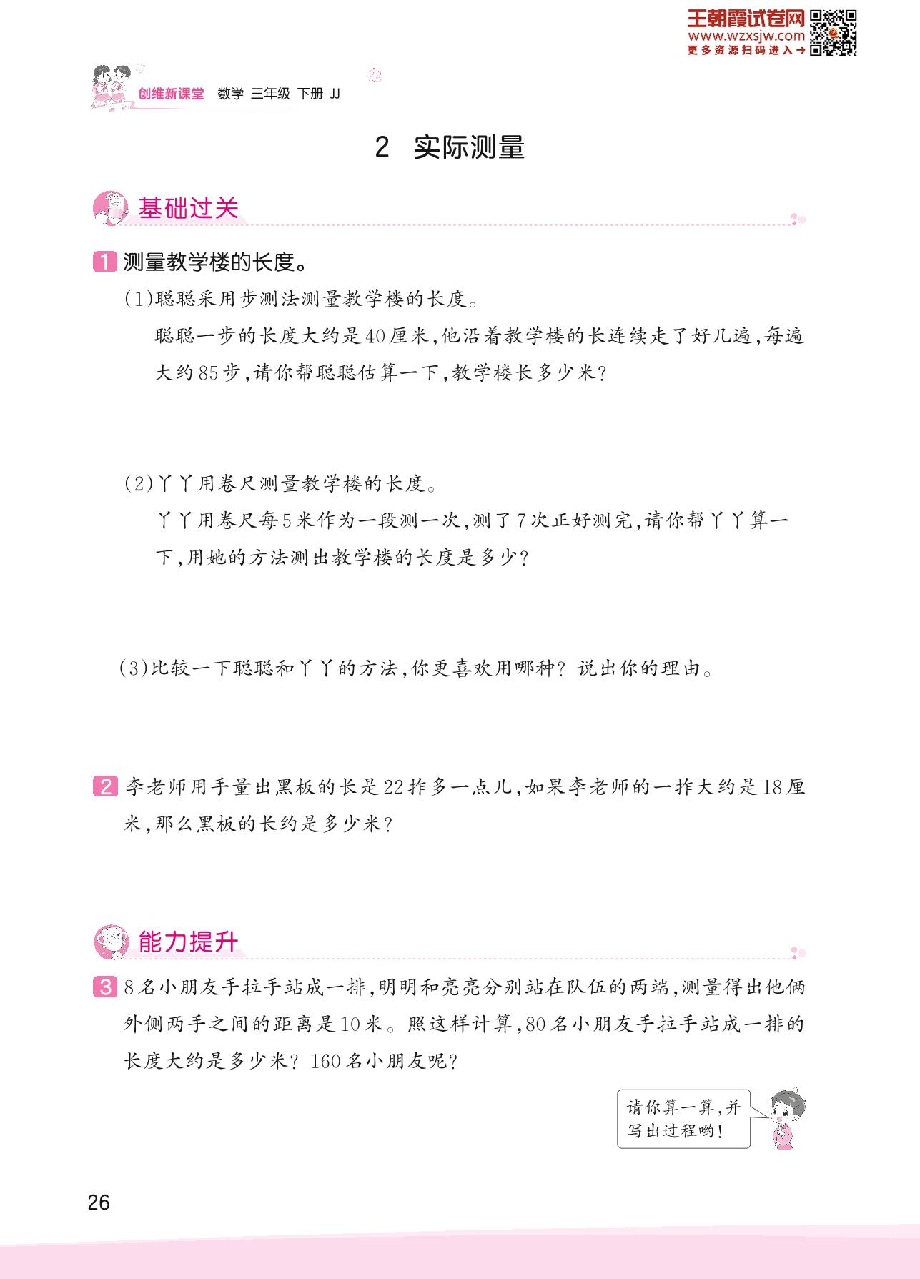 2023下册三年级数学冀教版 四 毫米和千米——2 实际测量