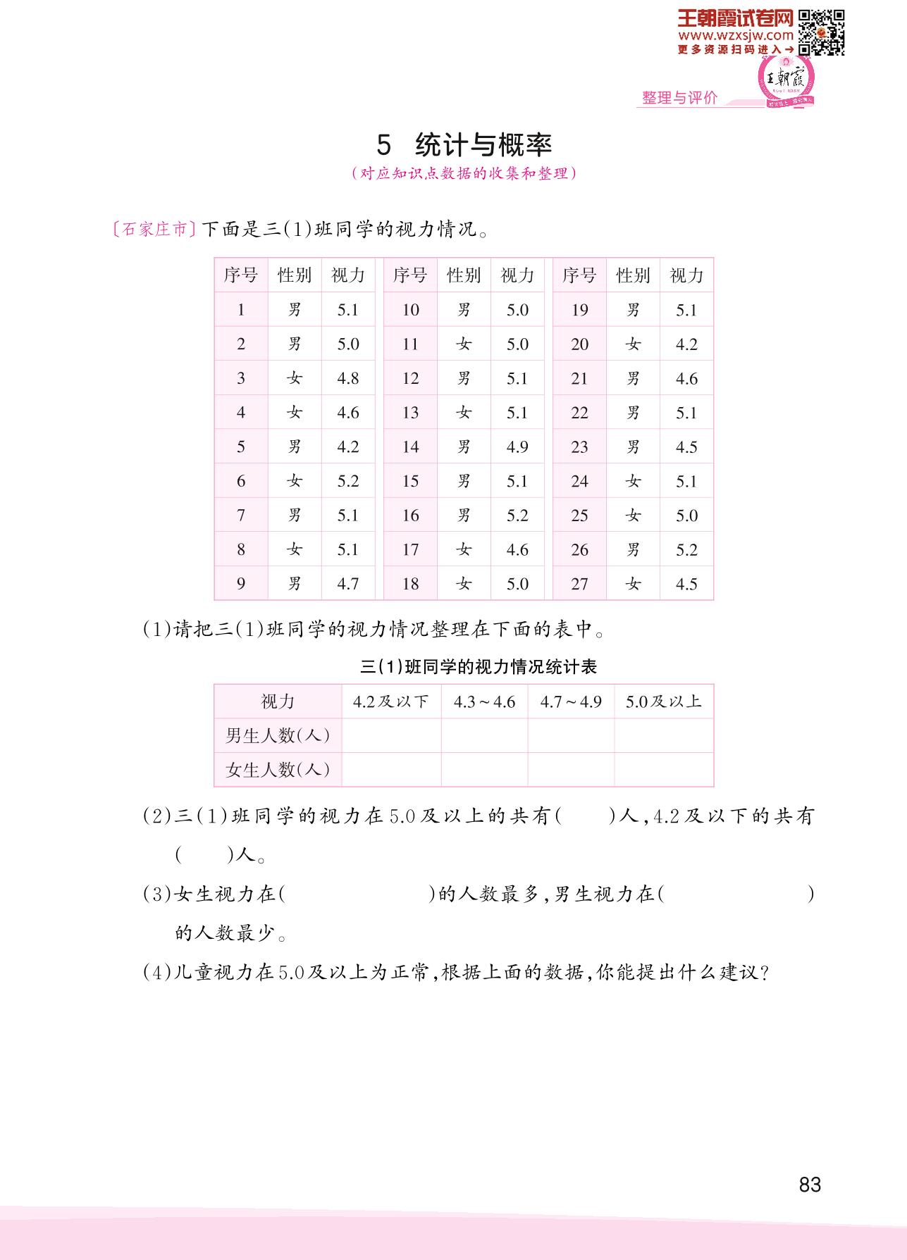 2023下册三年级数学冀教版 整理与评价——5 统计与概率