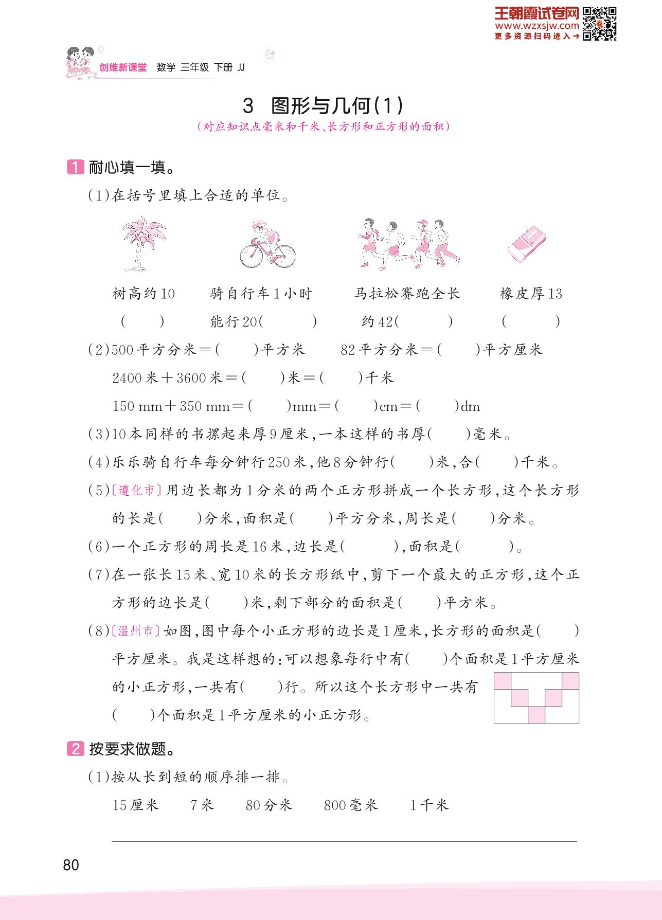 2023下册三年级数学冀教版 整理与评价——3 图形与几何(1)