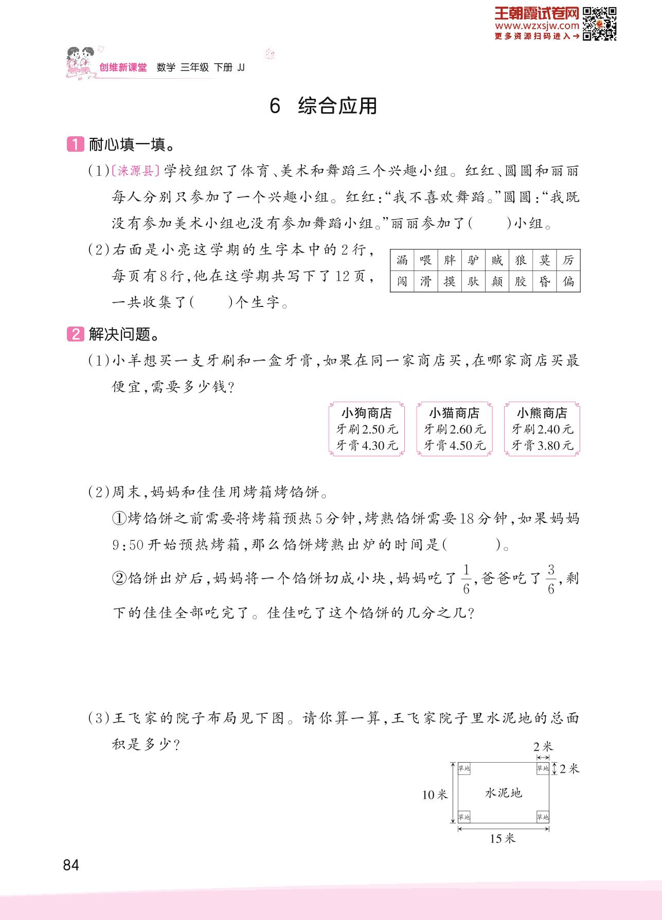 2023下册三年级数学冀教版 整理与评价——6 综合应用