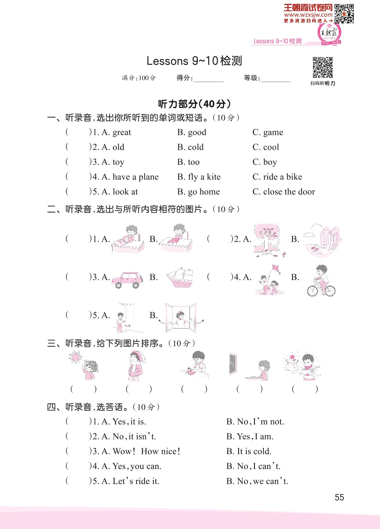 2023下册三年级英语科普版 Lessons 9~10 检测