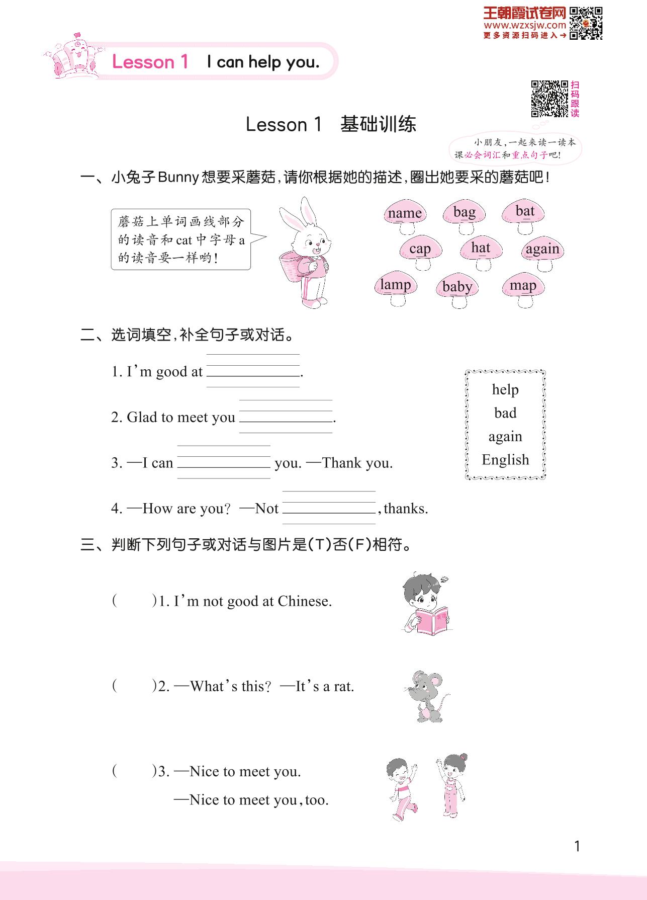 2023下册三年级英语科普版 Lesson 1 基础训练