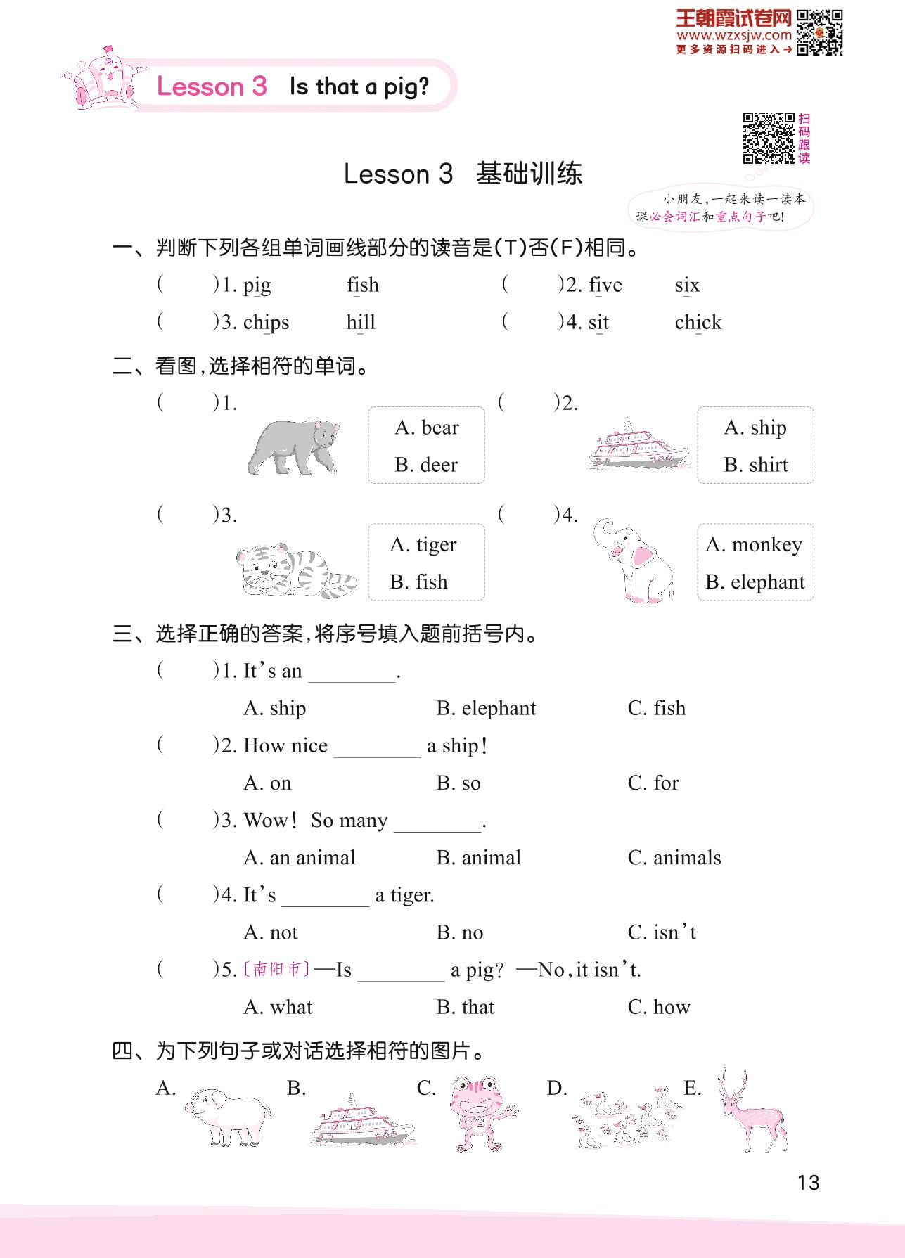 2023下册三年级英语科普版 Lesson 3 基础训练