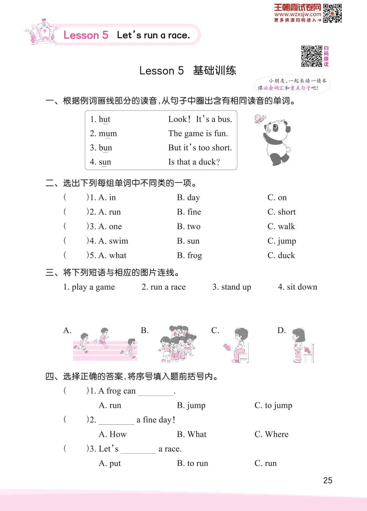 2023下册三年级英语科普版 Lesson 5 基础训练