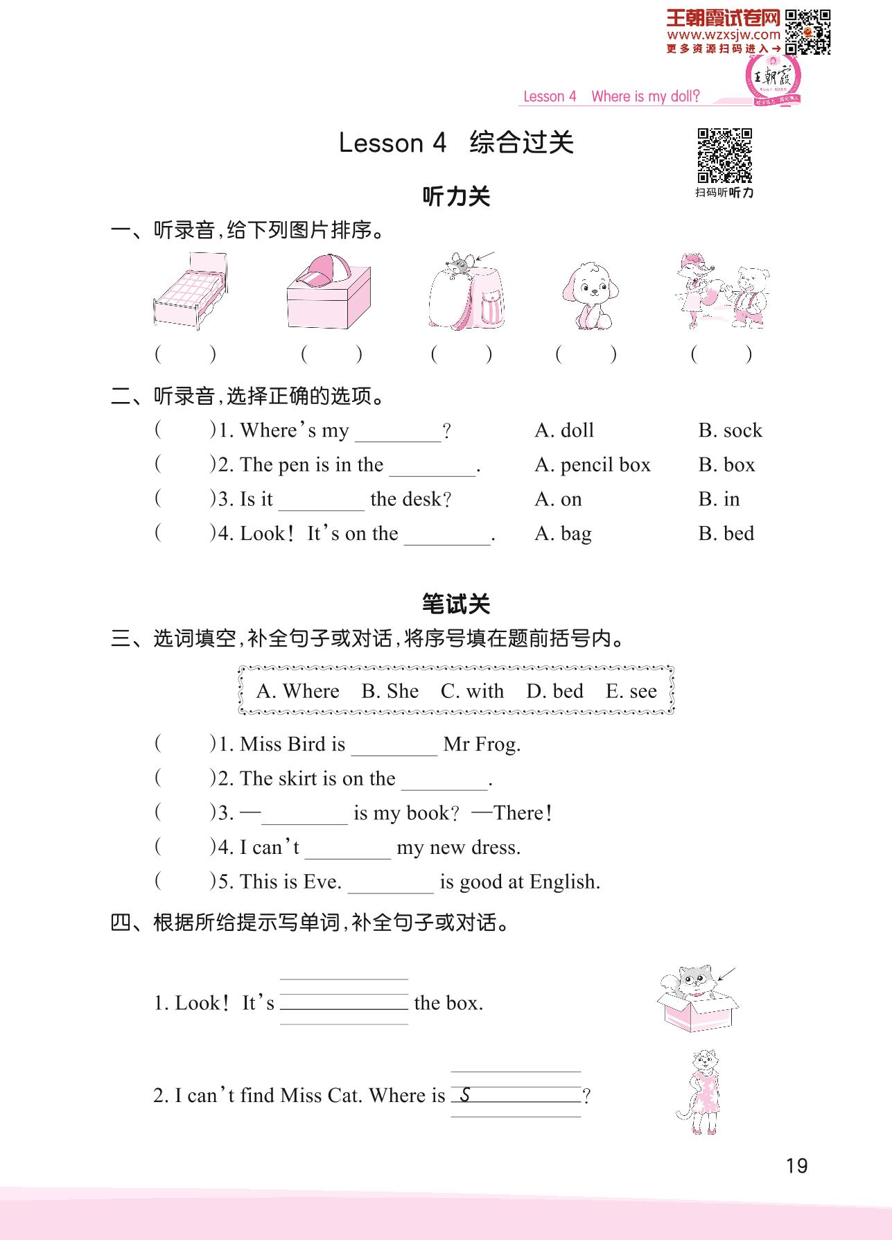 2023下册三年级英语科普版 Lesson 4 综合过关