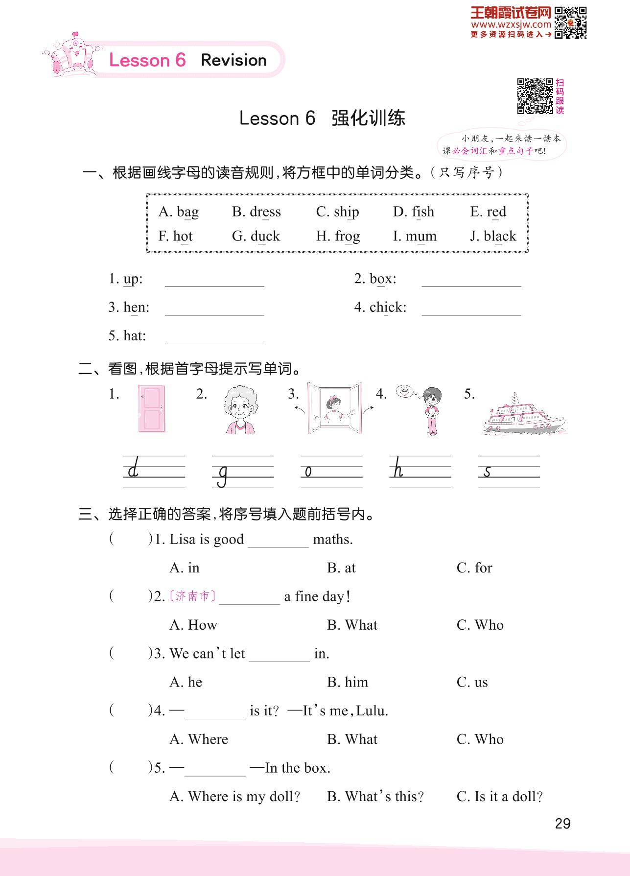 2023下册三年级英语科普版 Lesson 6 强化训练