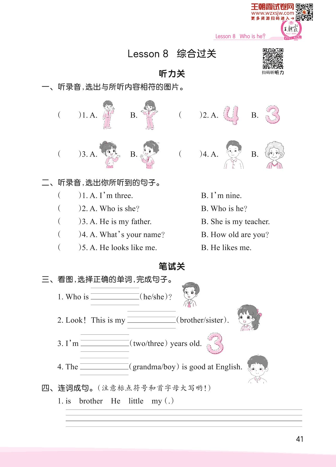 2023下册三年级英语科普版 Lesson 8 综合过关