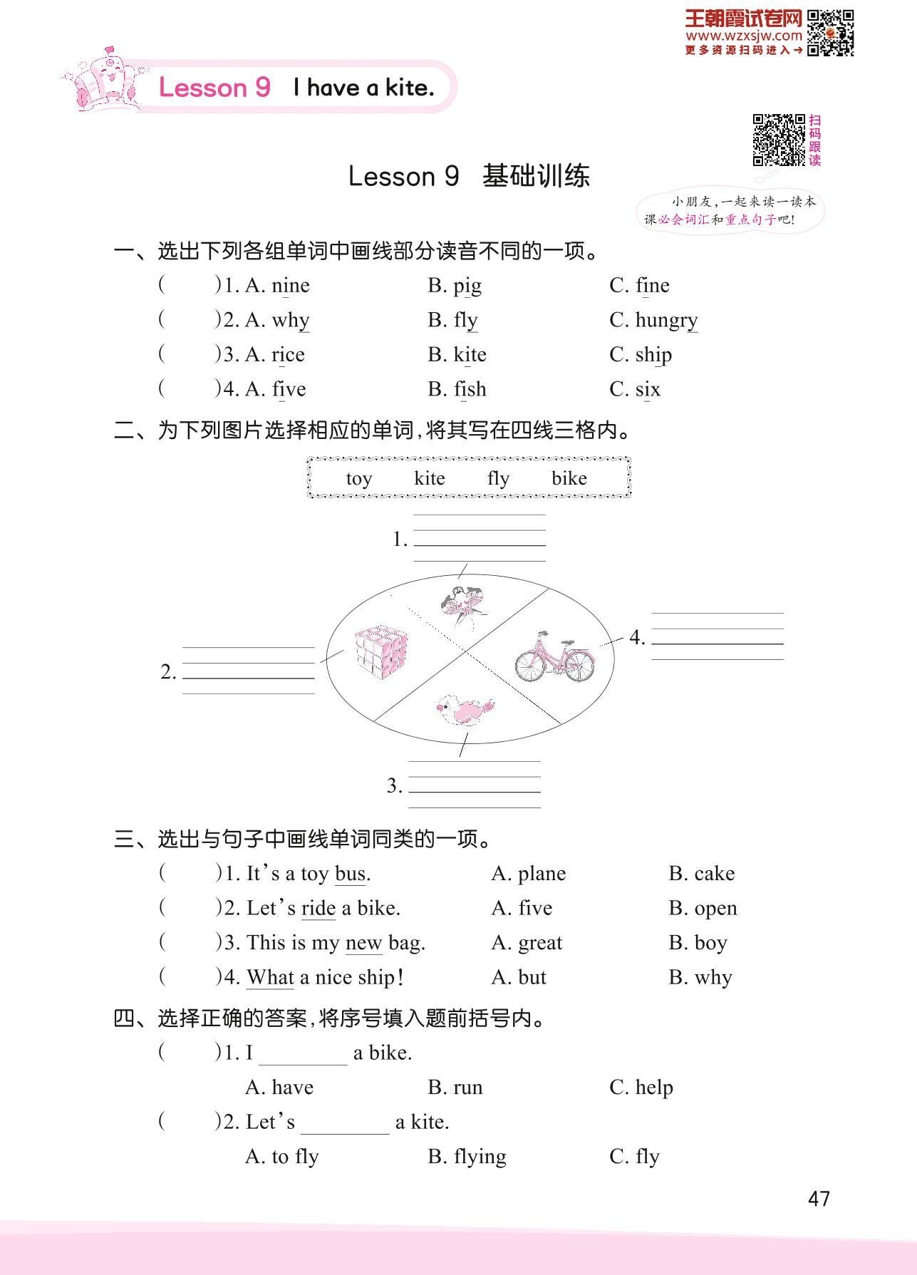 2023下册三年级英语科普版 Lesson 9 基础训练