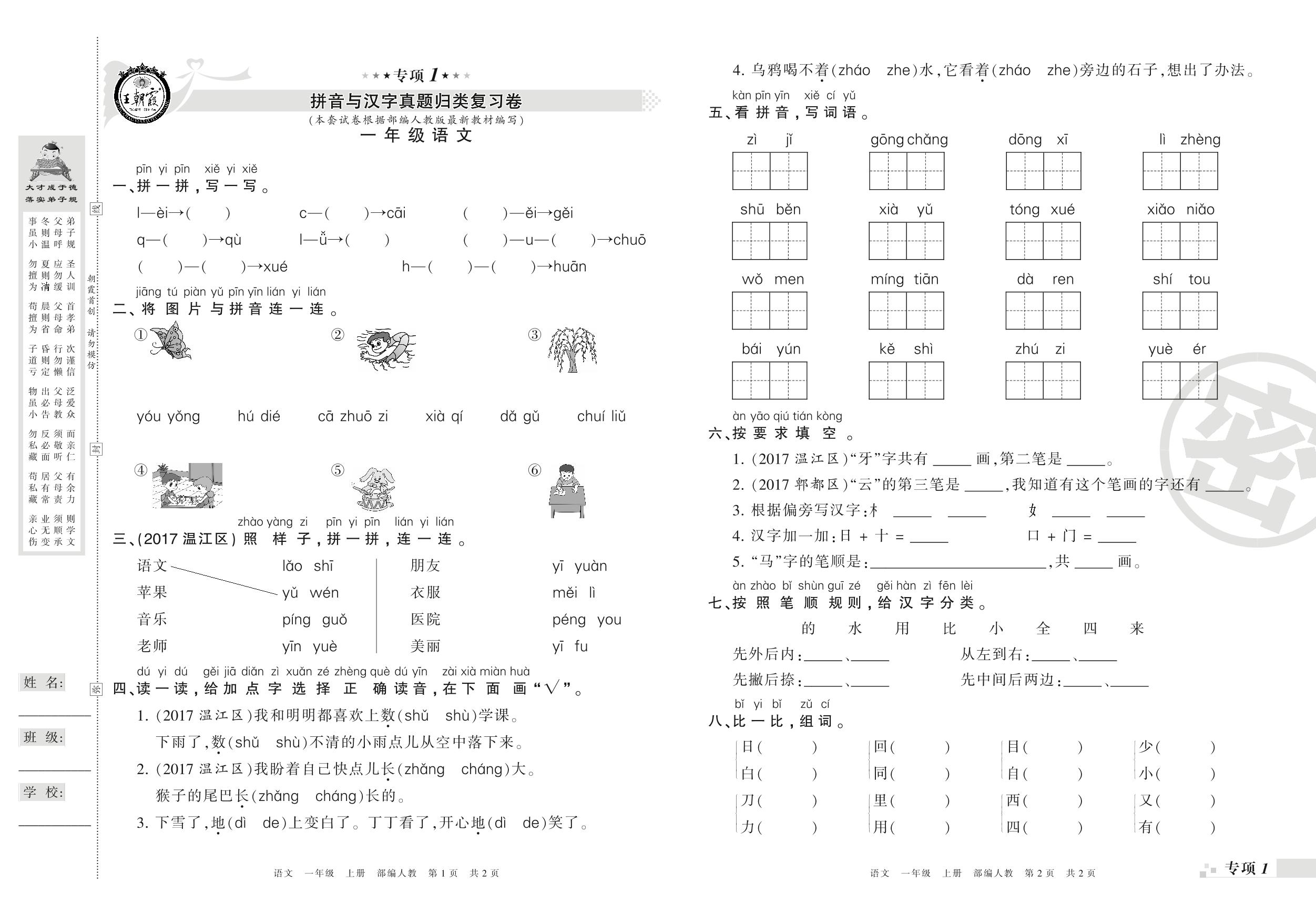 王朝霞期末专项卷一年级上册语文(人教版)_R210731190031【0】