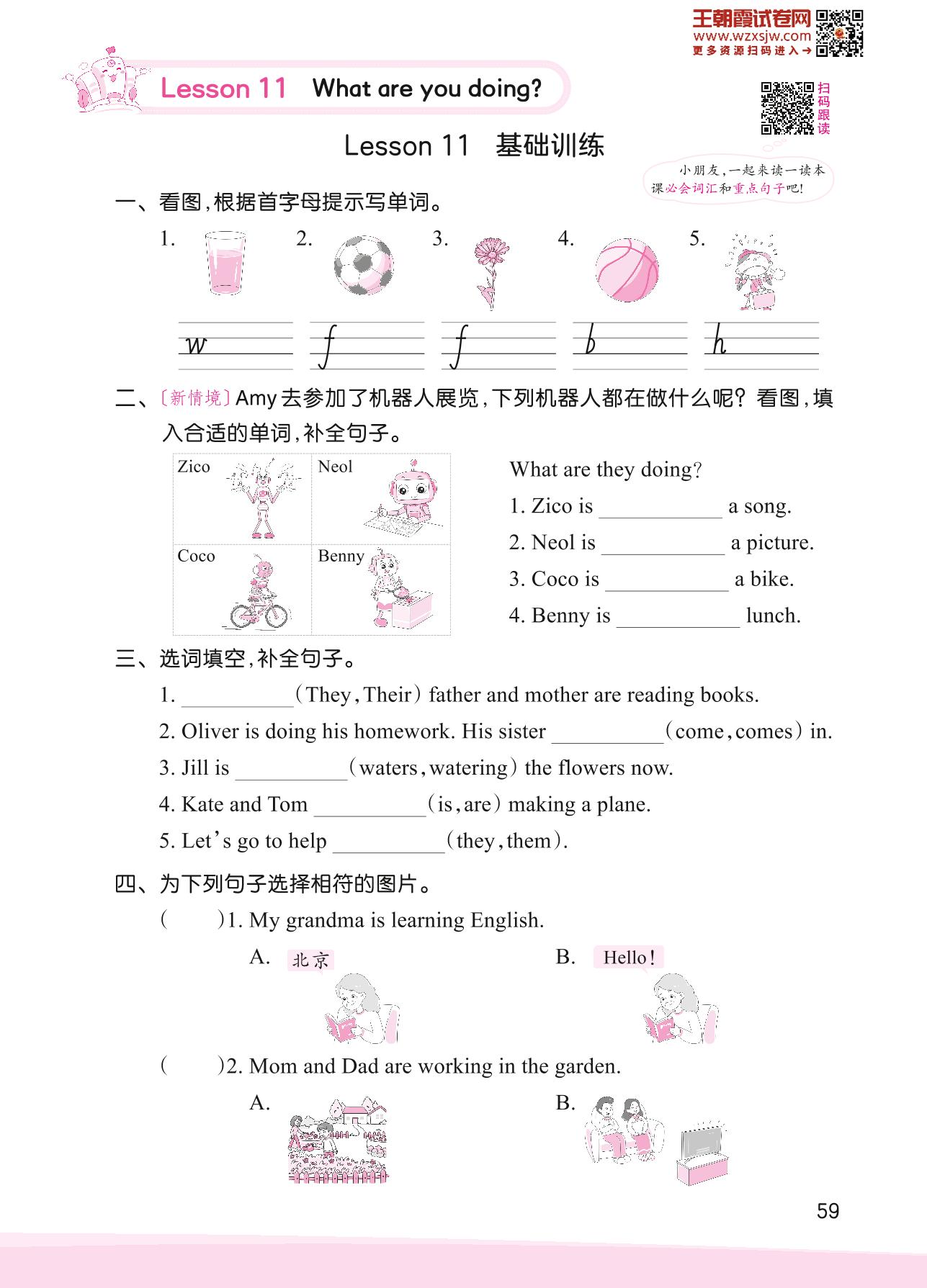 2023下册四年级英语科普版 Lesson 11 基础训练
