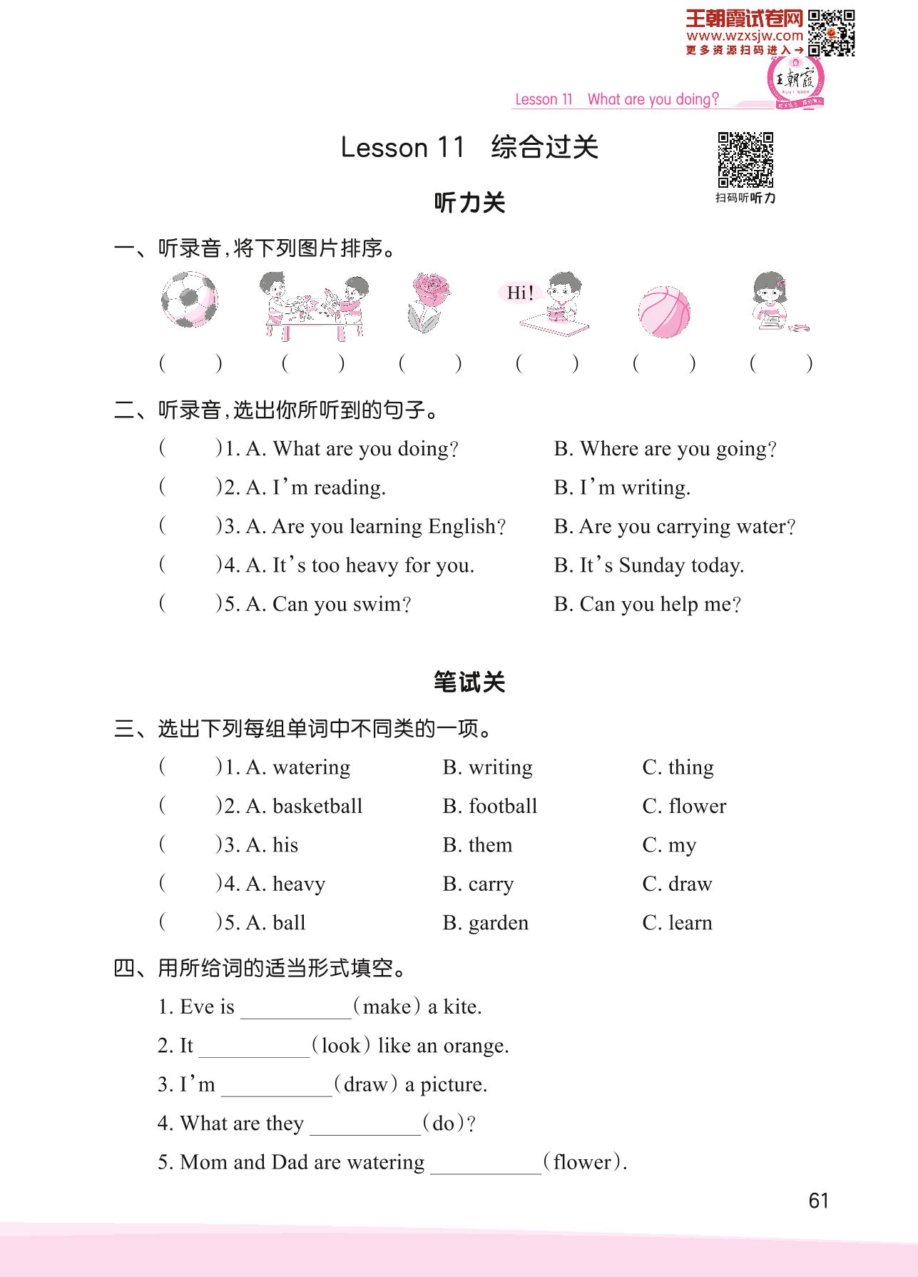 2023下册四年级英语科普版 Lesson 11 综合过关