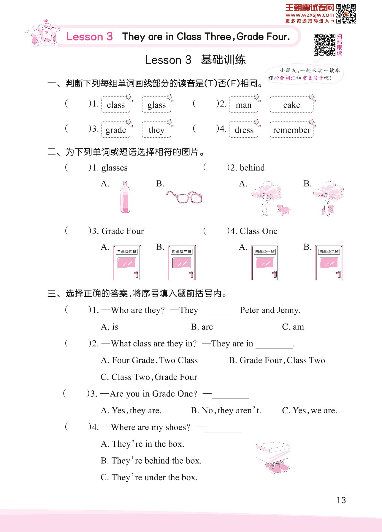 2023下册四年级英语科普版 Lesson 3 基础训练