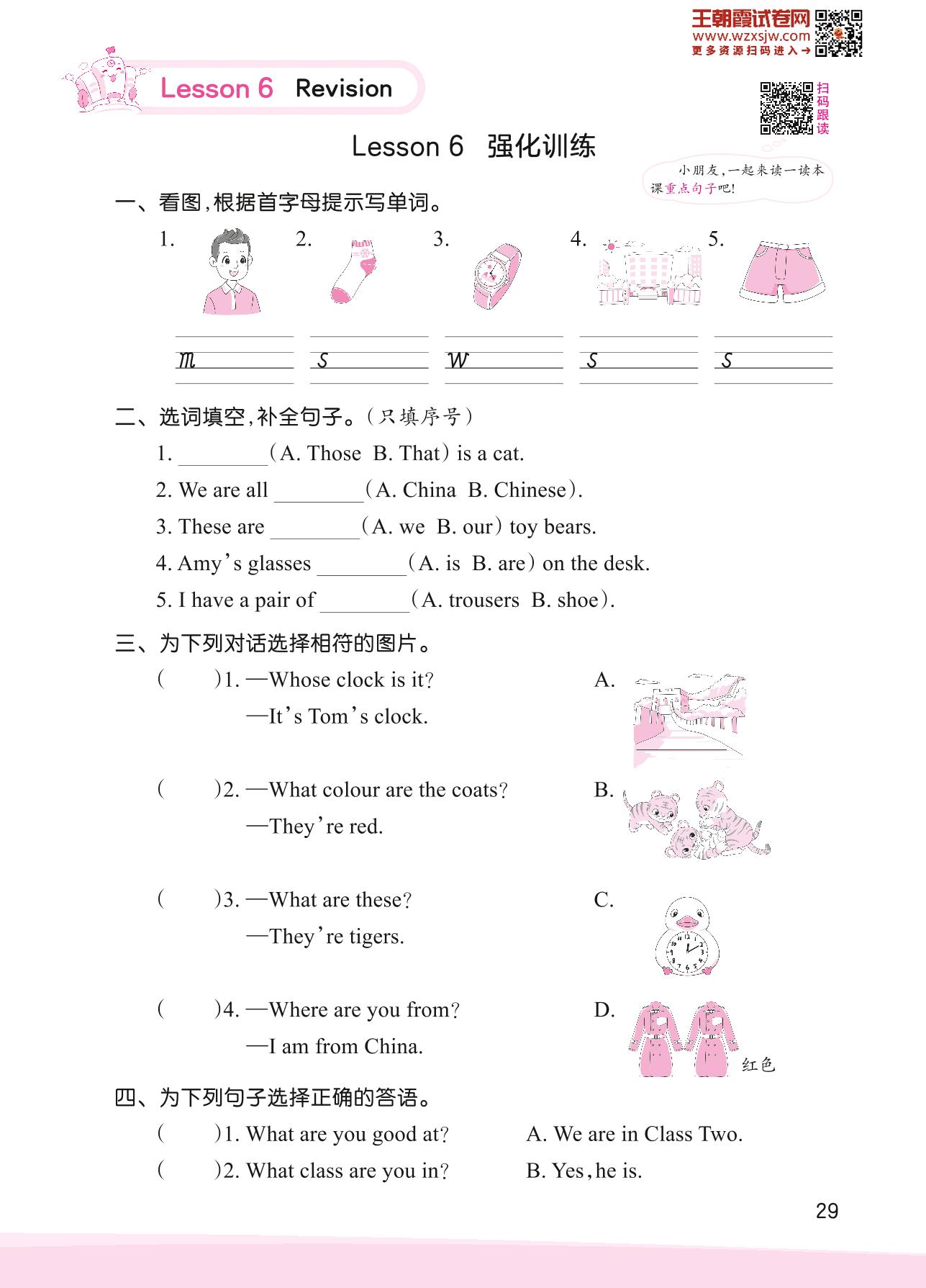2023下册四年级英语科普版 Lesson 6 强化训练