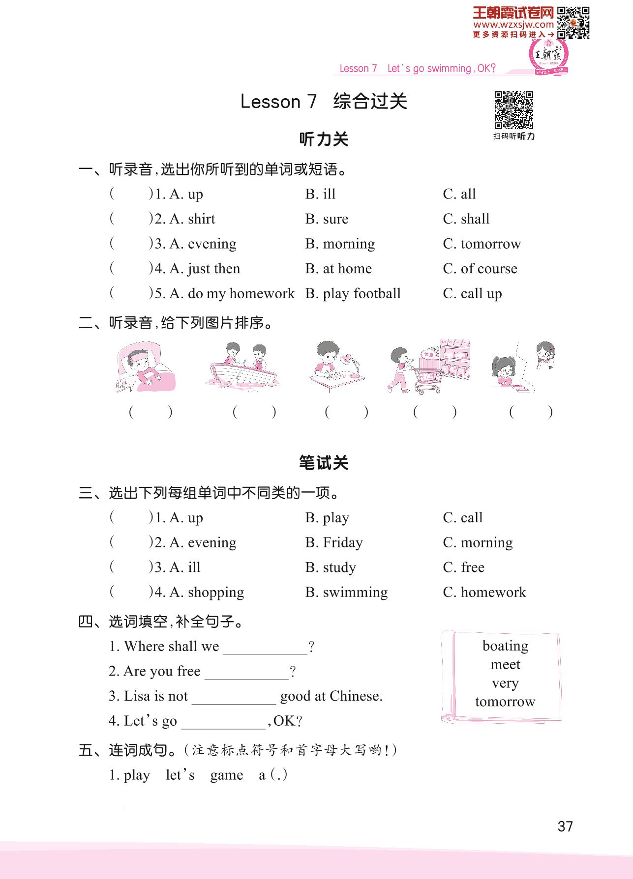 2023下册四年级英语科普版 Lesson 7 综合过关