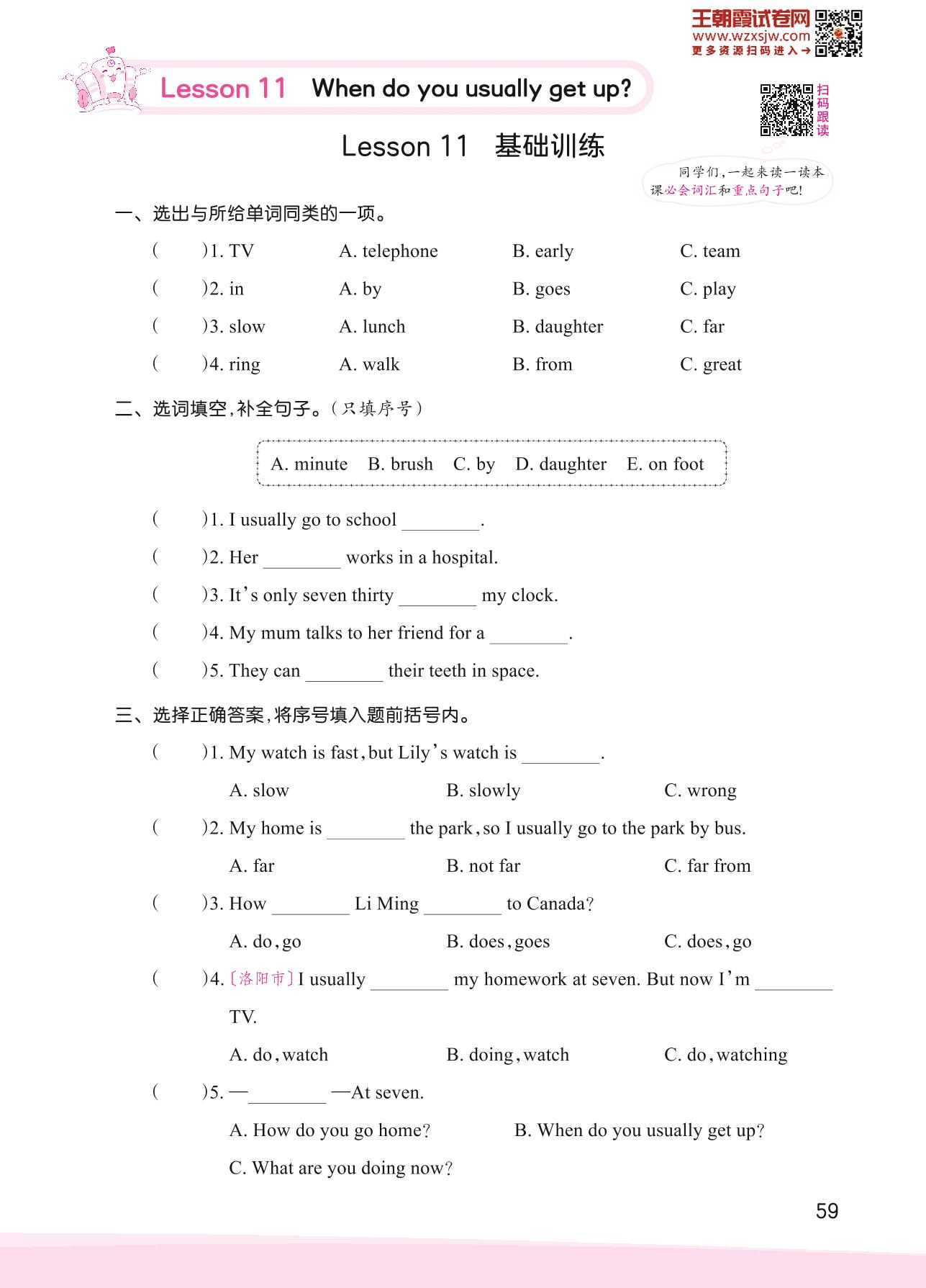 2023下册五年级英语科普版 Lesson 11 基础训练