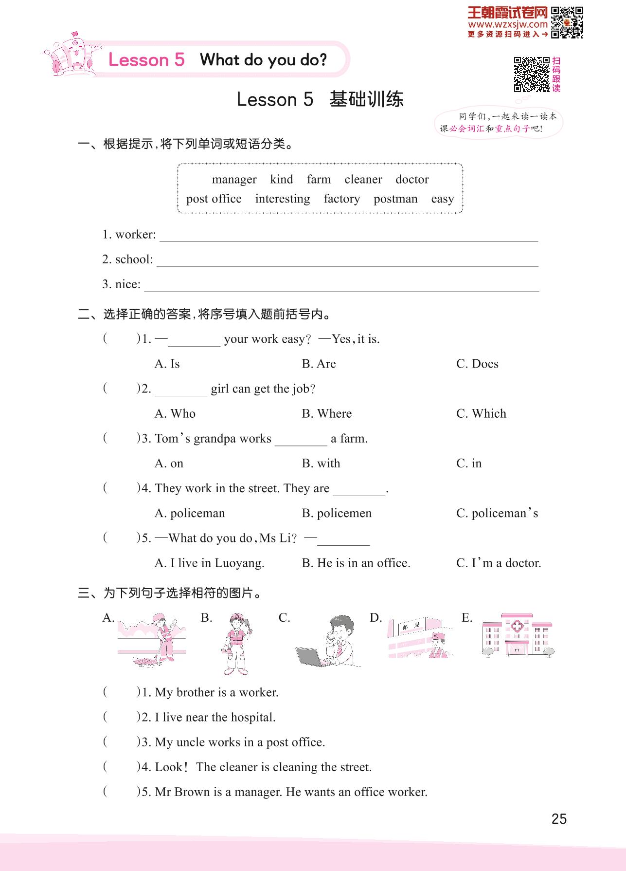 2023下册五年级英语科普版 Lesson 5 基础训练