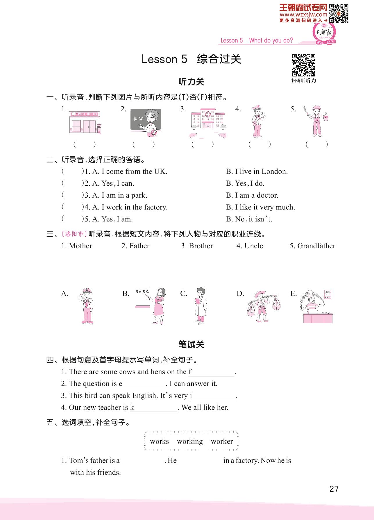 2023下册五年级英语科普版 Lesson 5 综合过关