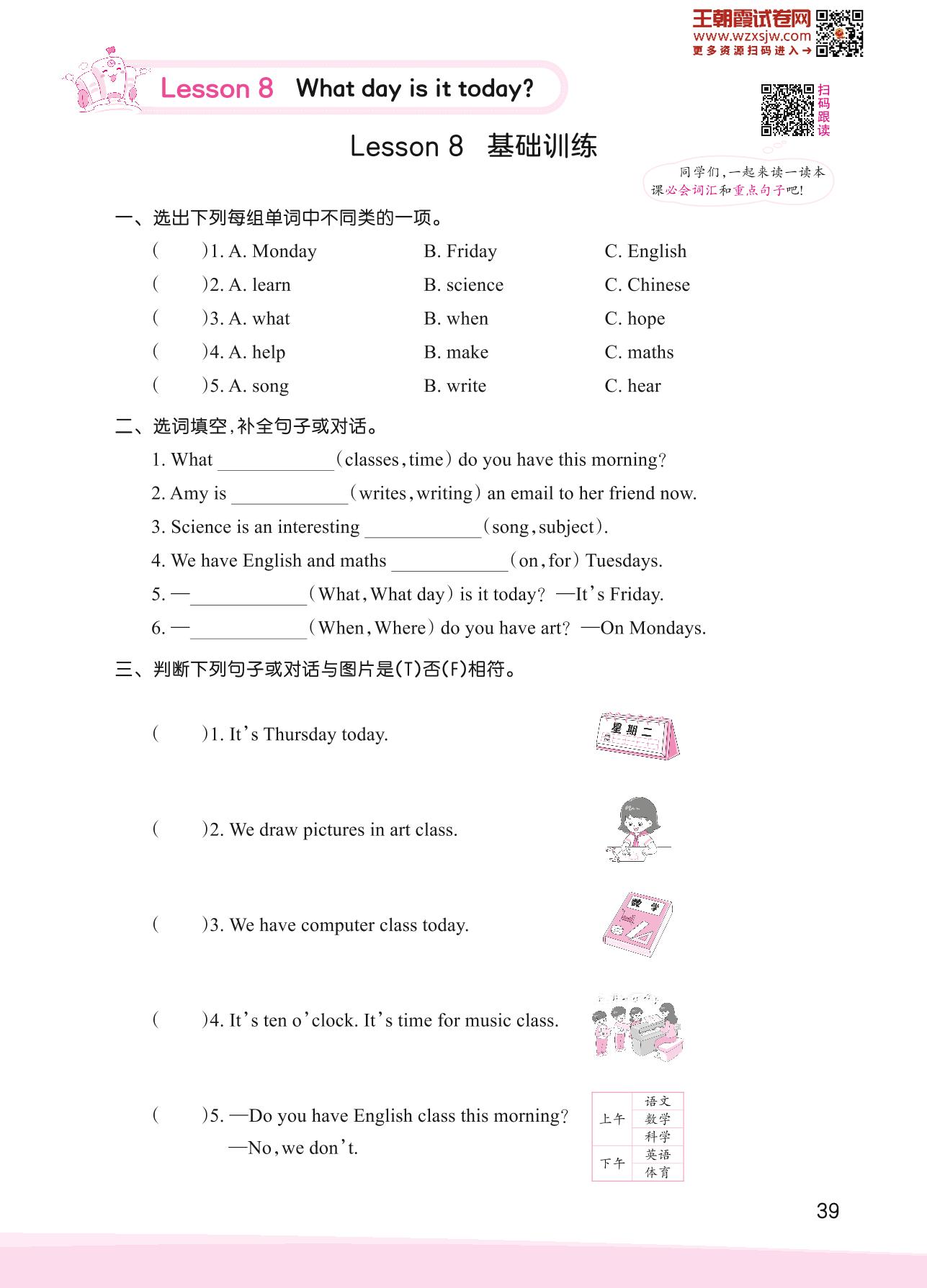 2023下册五年级英语科普版 Lesson 8 基础训练