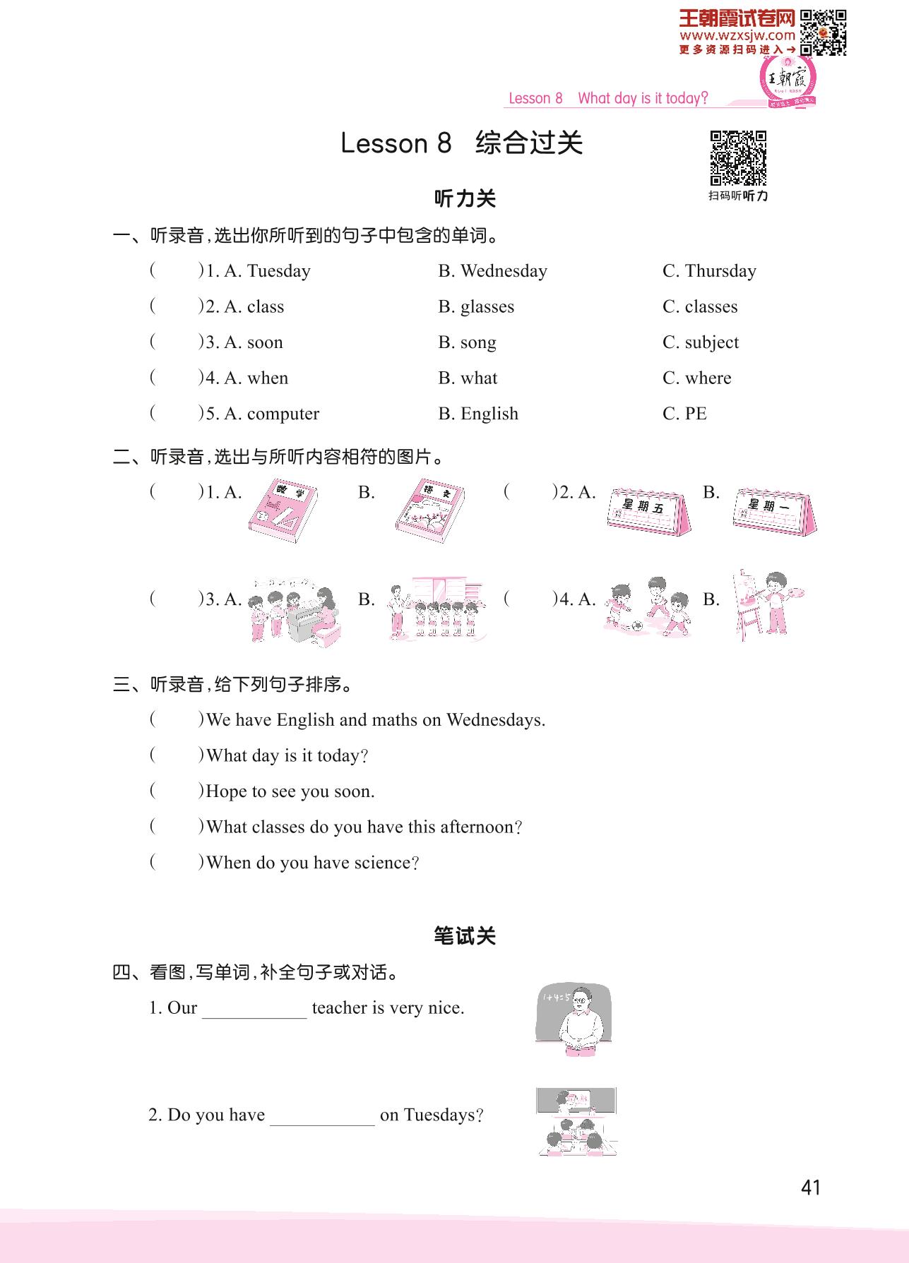 2023下册五年级英语科普版 Lesson 8 综合过关