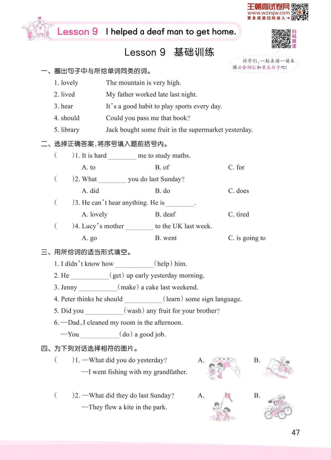 2023下册六年级英语科普版 Lesson 9 基础训练