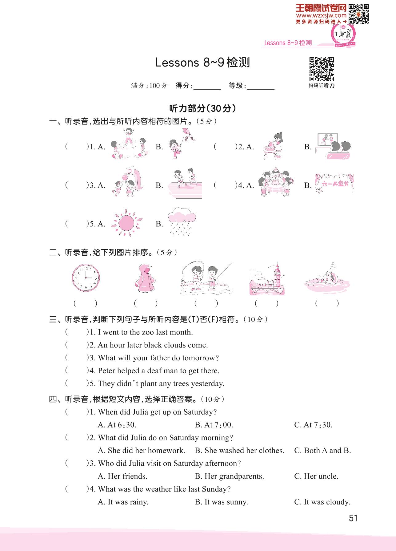 2023下册六年级英语科普版 Lessons 8~9 检测