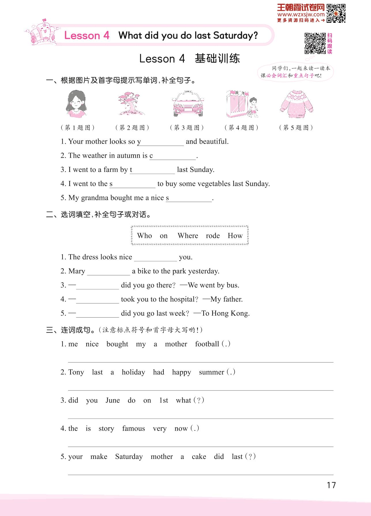 2023下册六年级英语科普版 Lesson 4 基础训练