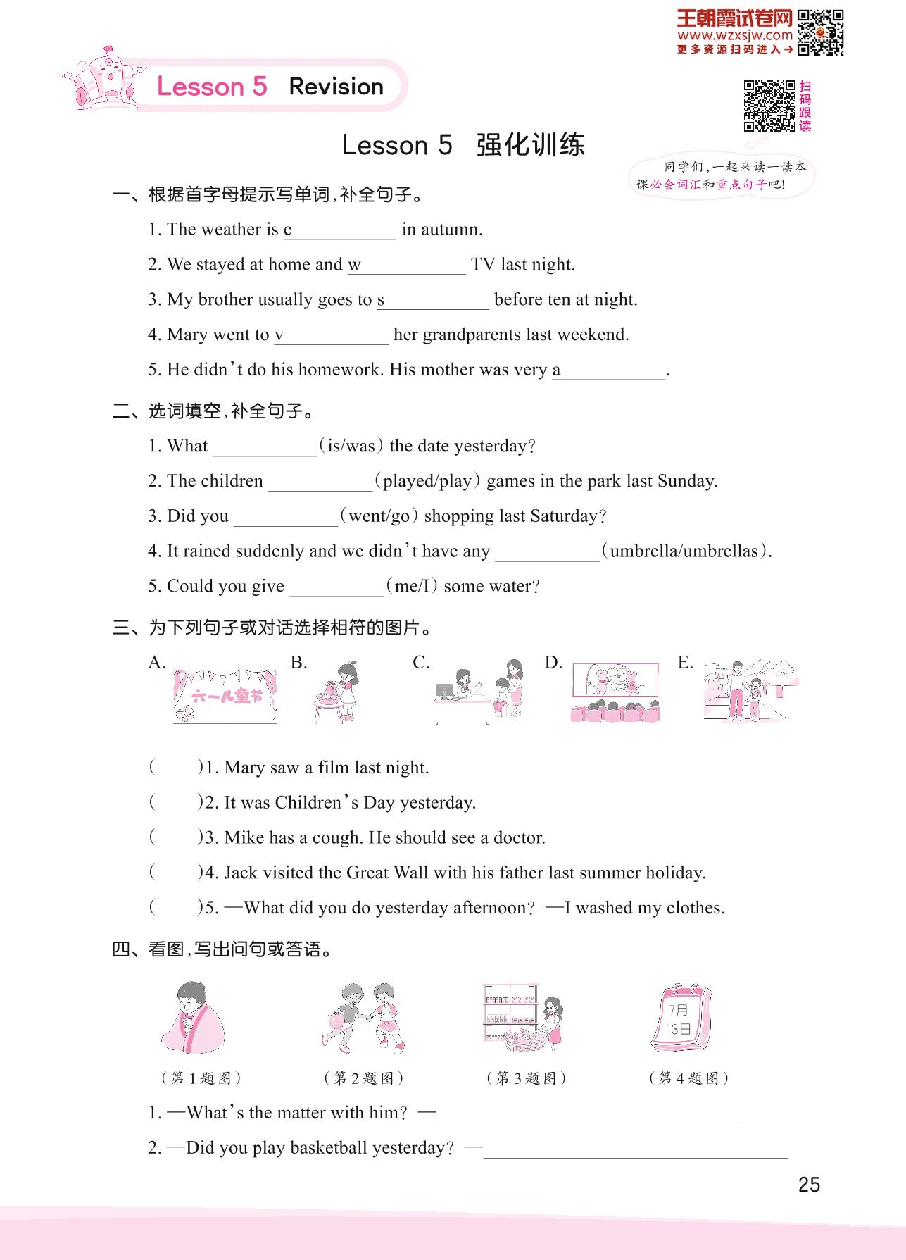 2023下册六年级英语科普版 Lesson 5 强化训练
