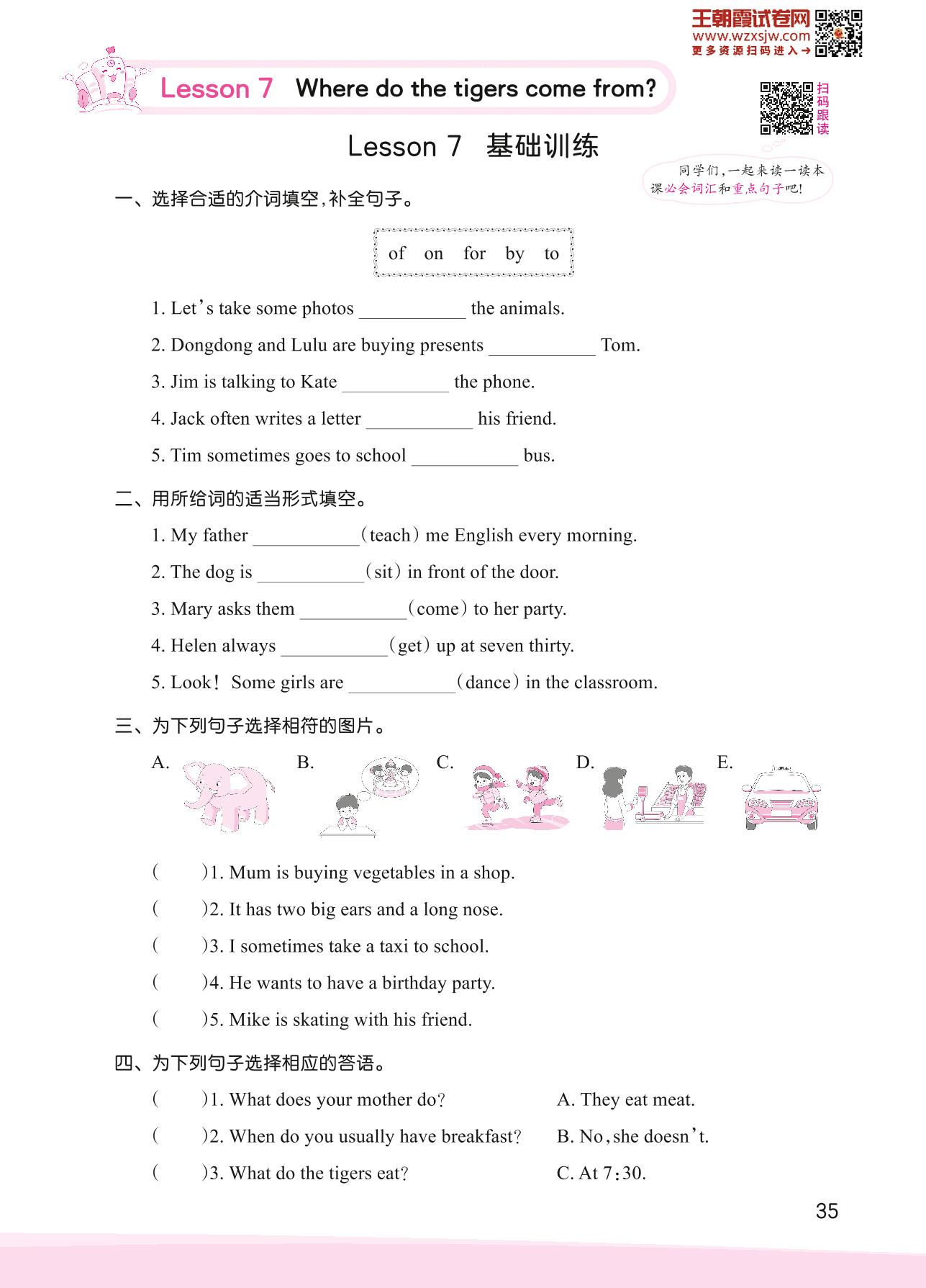 2023下册六年级英语科普版 Lesson 7 基础训练