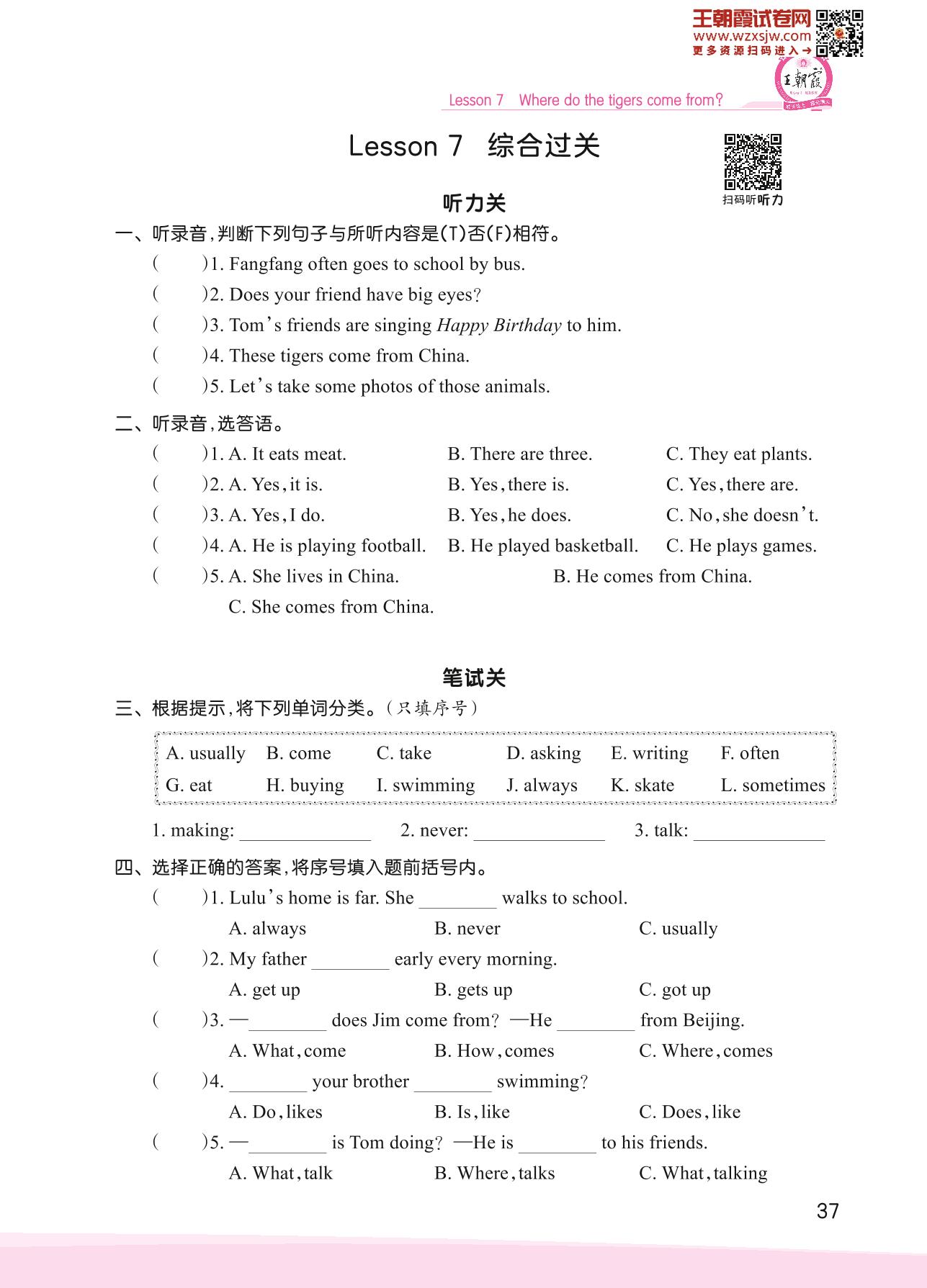2023下册六年级英语科普版 Lesson 7 综合过关