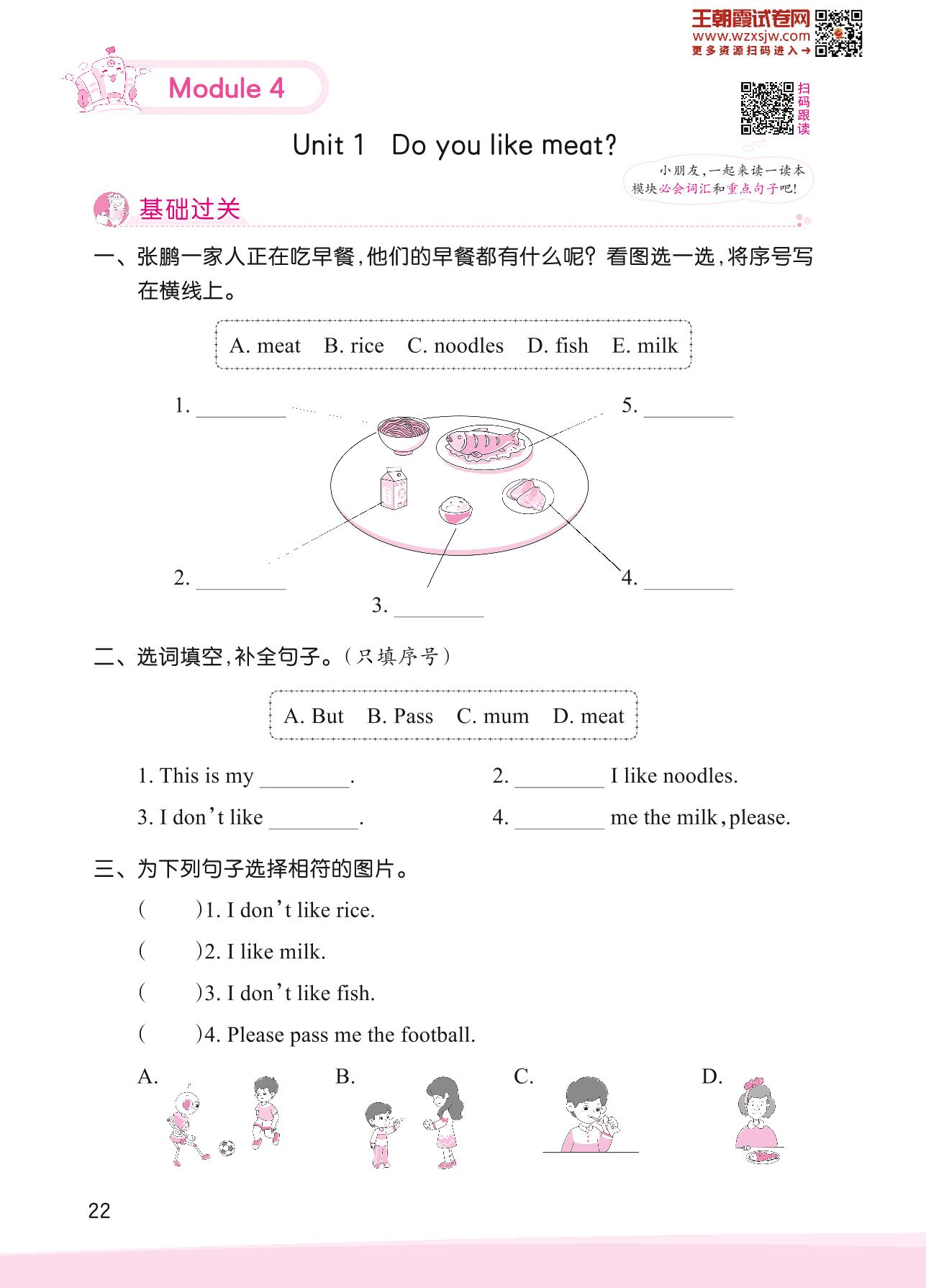 2023下册三年级英语外研版 Module 4—Unit 1 Do you like meat?