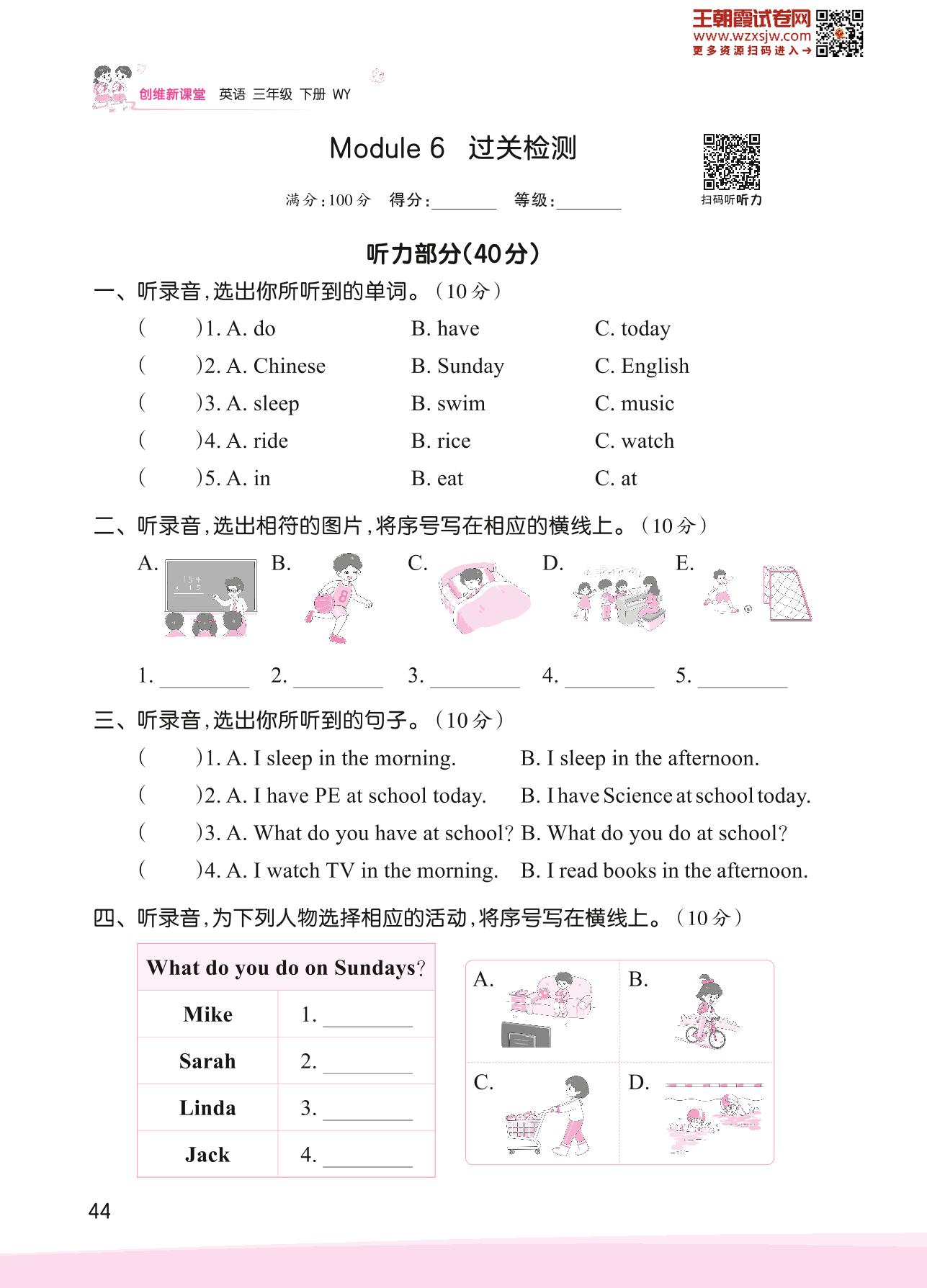 2023下册三年级英语外研版 Module 6 过关检测