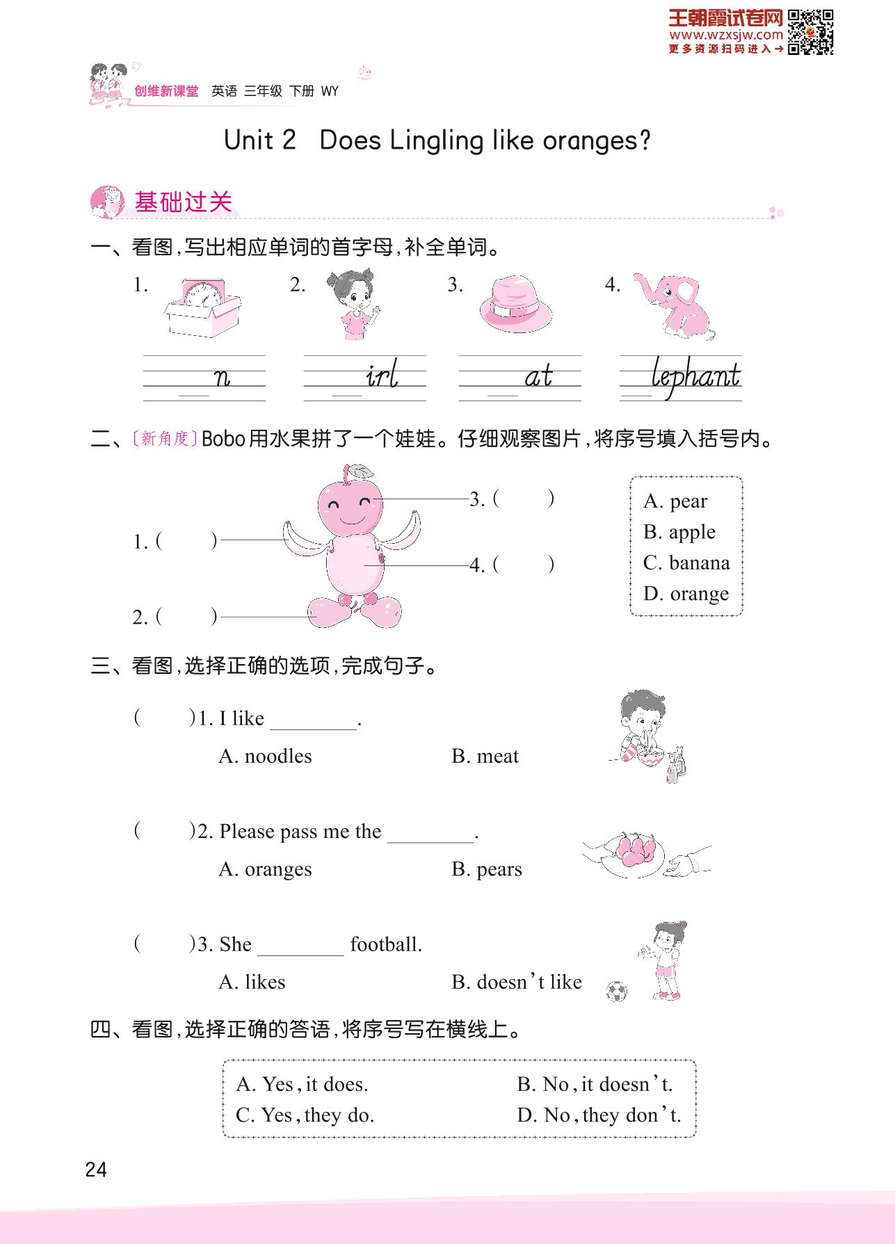 2023下册三年级英语外研版 Module 4—Unit 2 Does Lingling like oranges?
