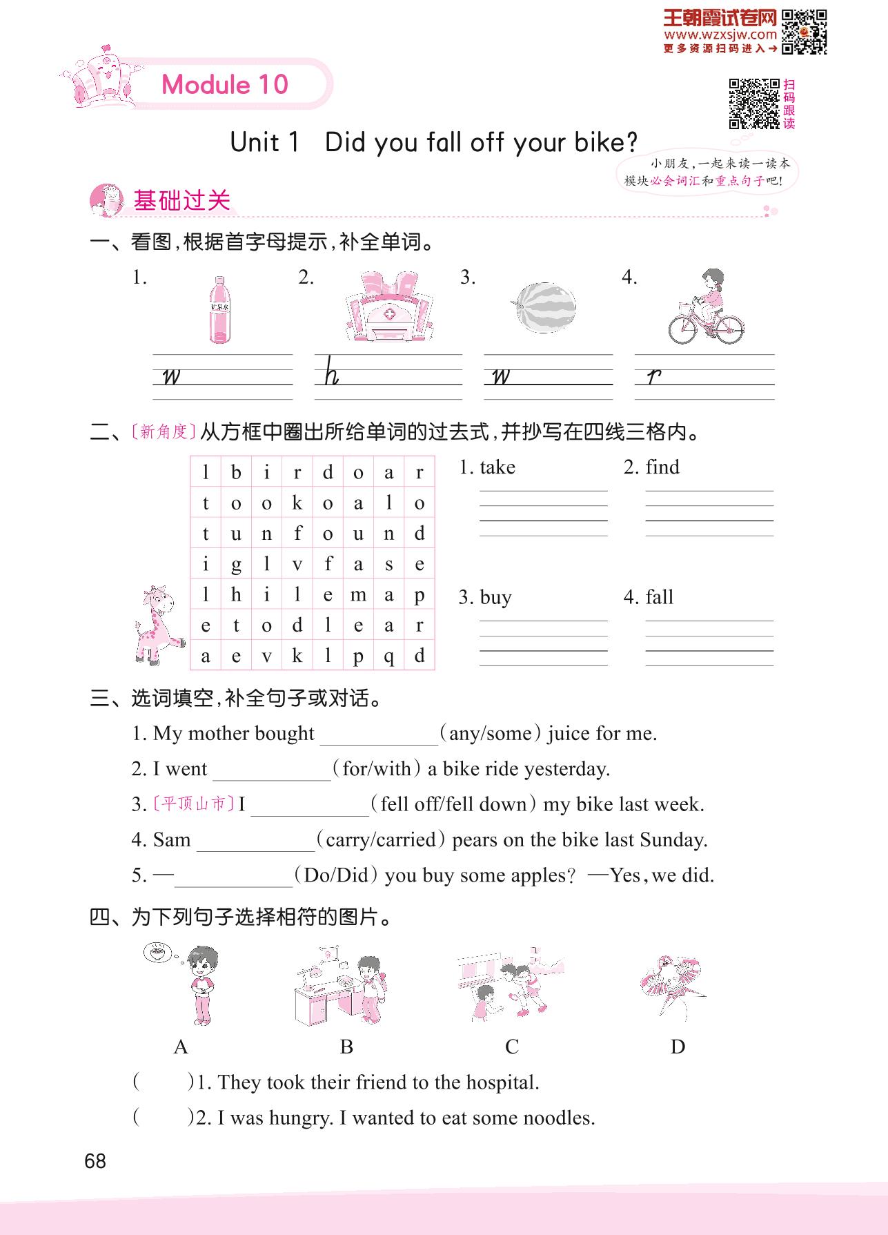 2023下册四年级英语外研版 Module 10—Unit 1 Did you fall off your bike?