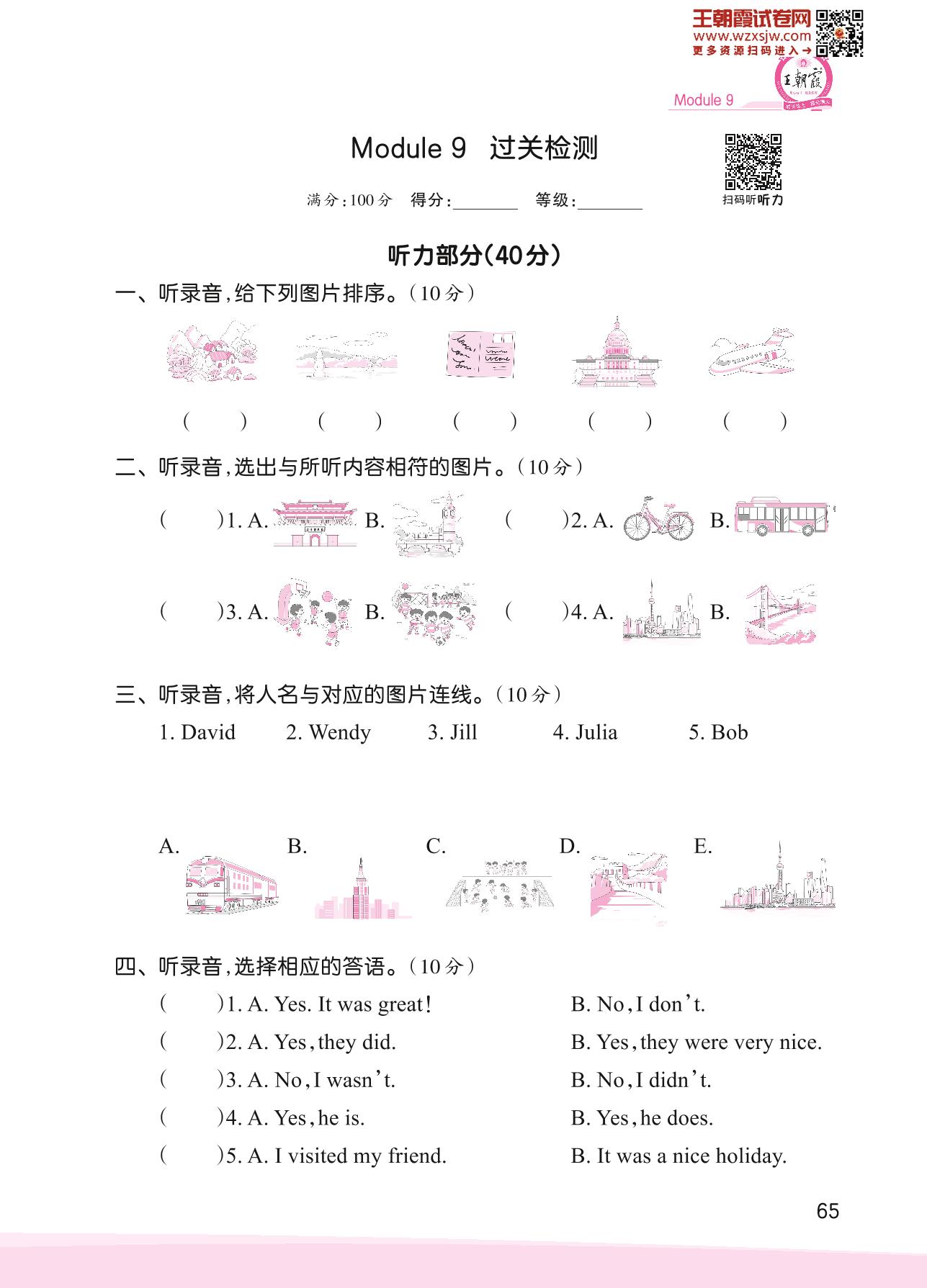 2023下册四年级英语外研版 Module 9 过关检测
