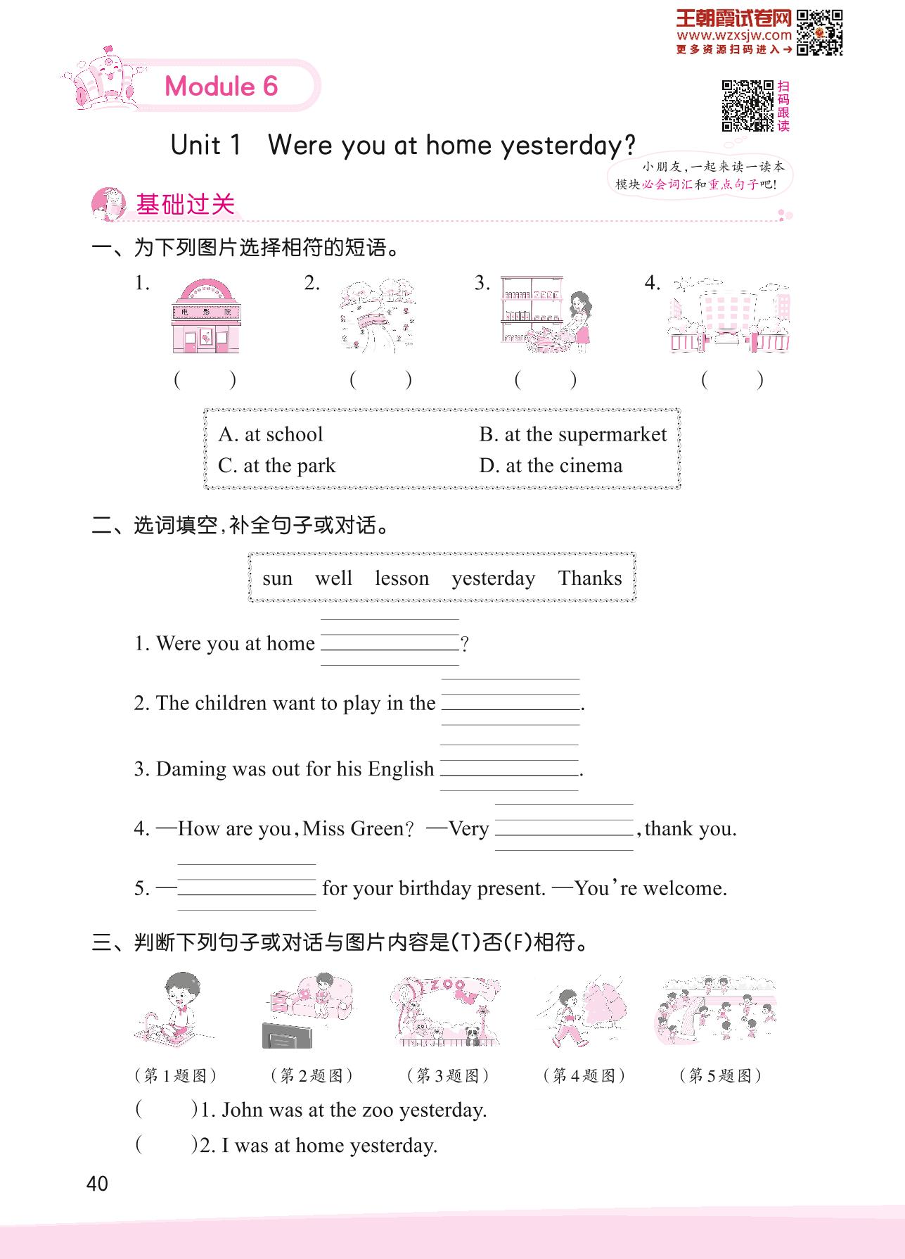 2023下册四年级英语外研版 Module 6—Unit 1 Were you at home yesterday?