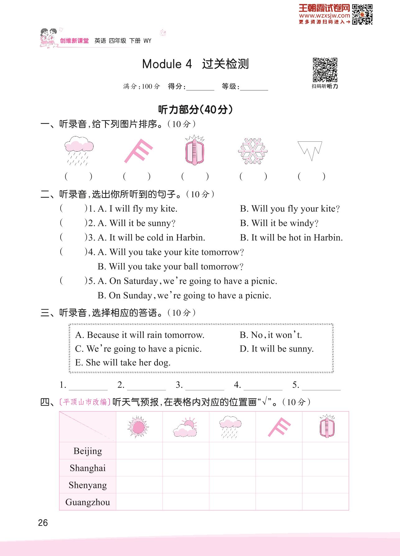 四年级英语外研版(三起始)下册单元卷