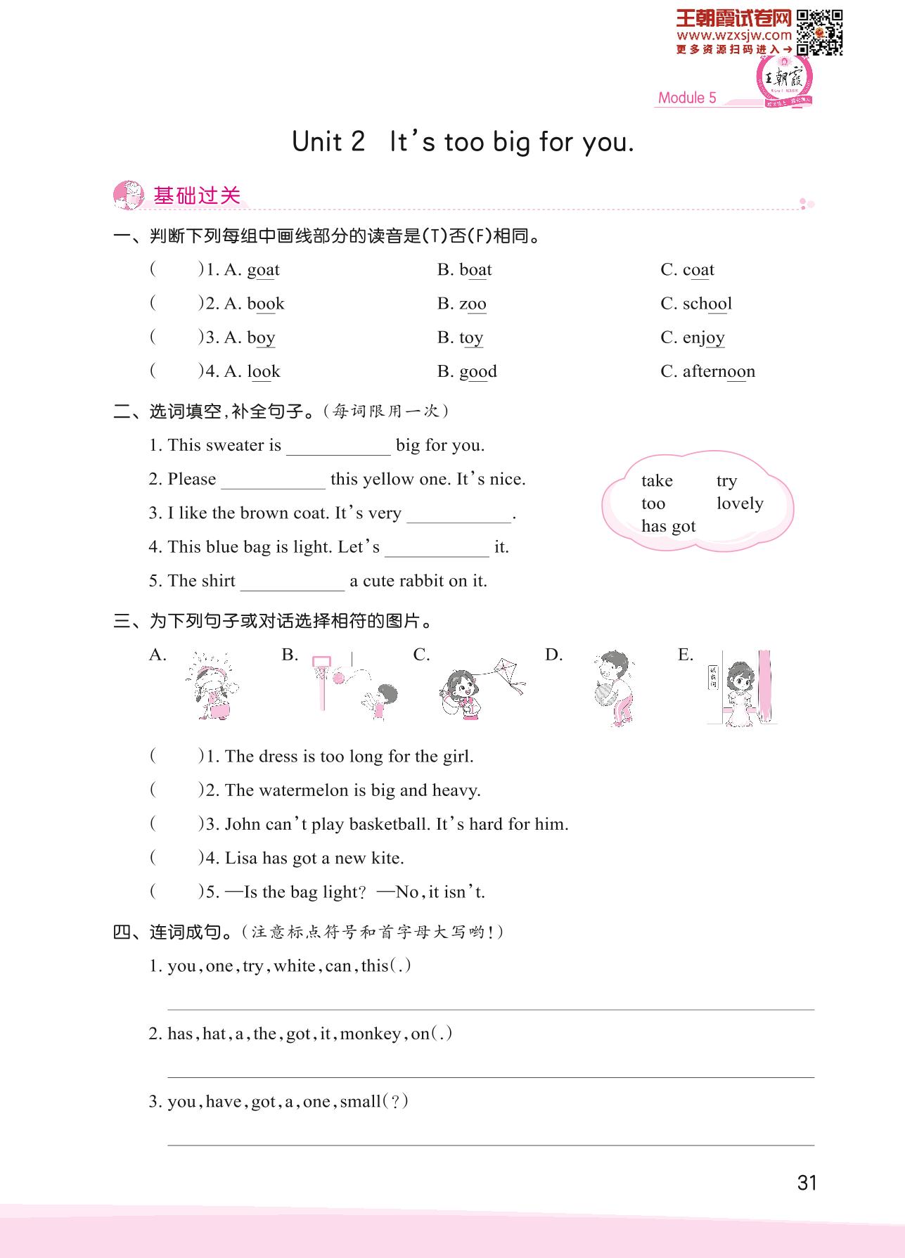 2023下册五年级英语外研版 Module 5—Unit 2 It’s too big for you.