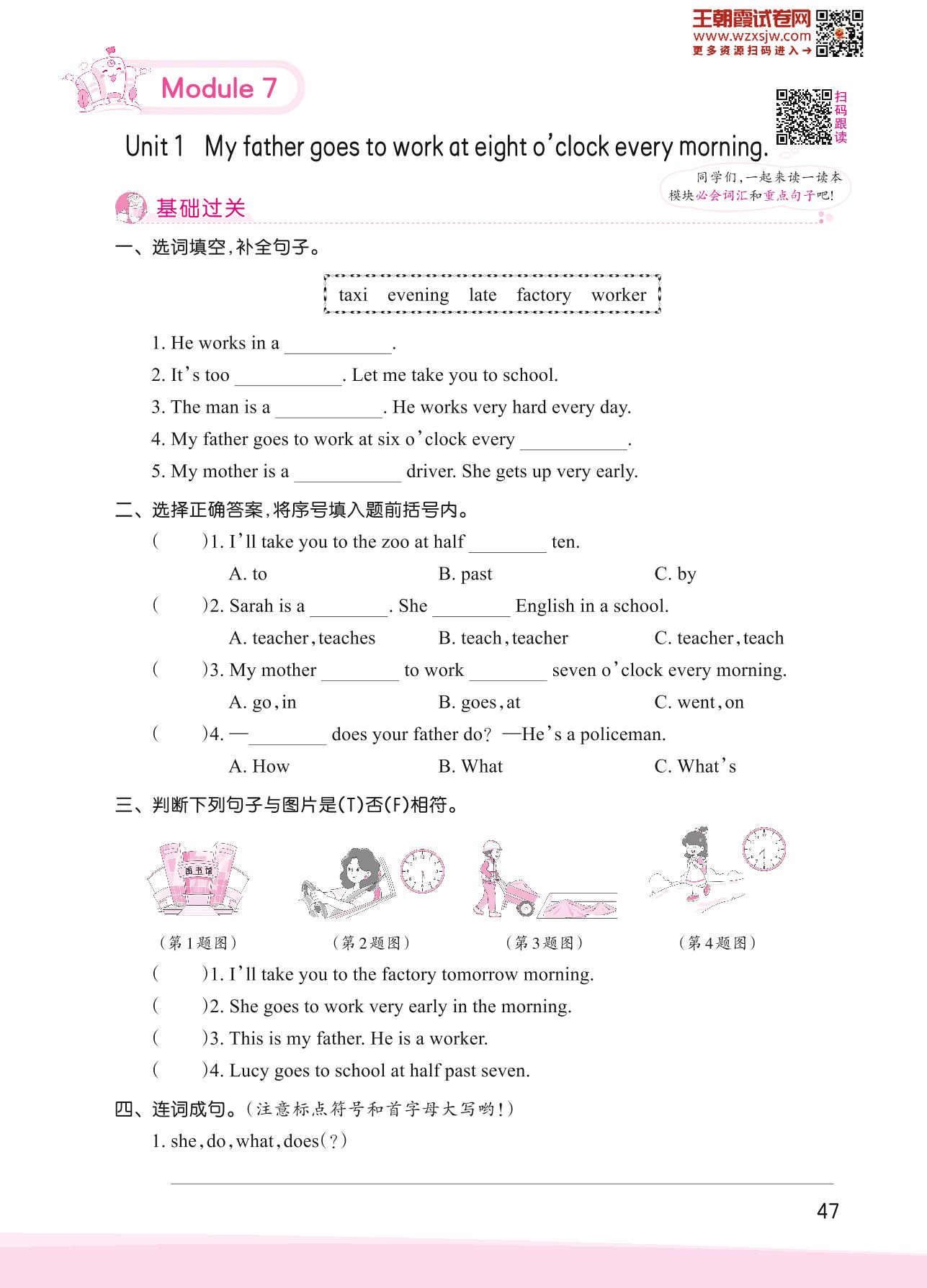 2023下册五年级英语外研版 Module 7—Unit 1 My father goes to work at eight o’clock every morning.
