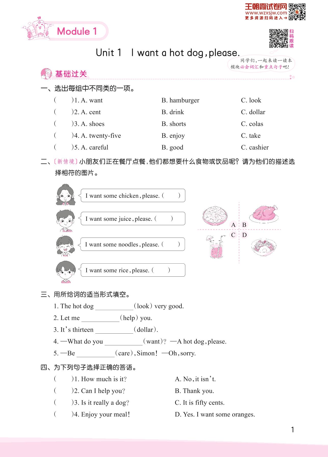 2023下册六年级英语外研版 Module 1—Unit 1 I want a hot dog,please.