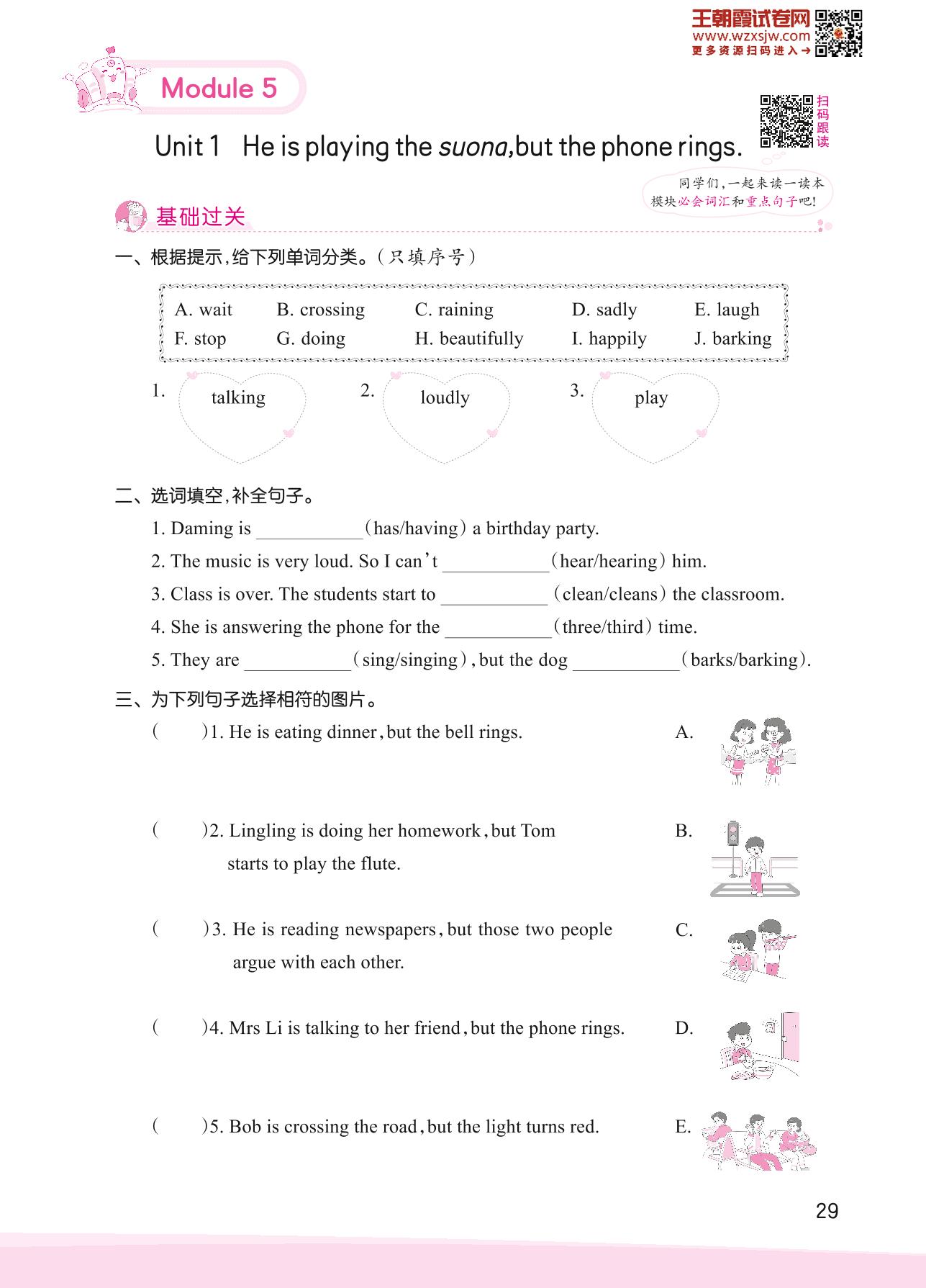 2023下册六年级英语外研版 Module 5—Unit 1 He is playing the suona,but the phone rings.