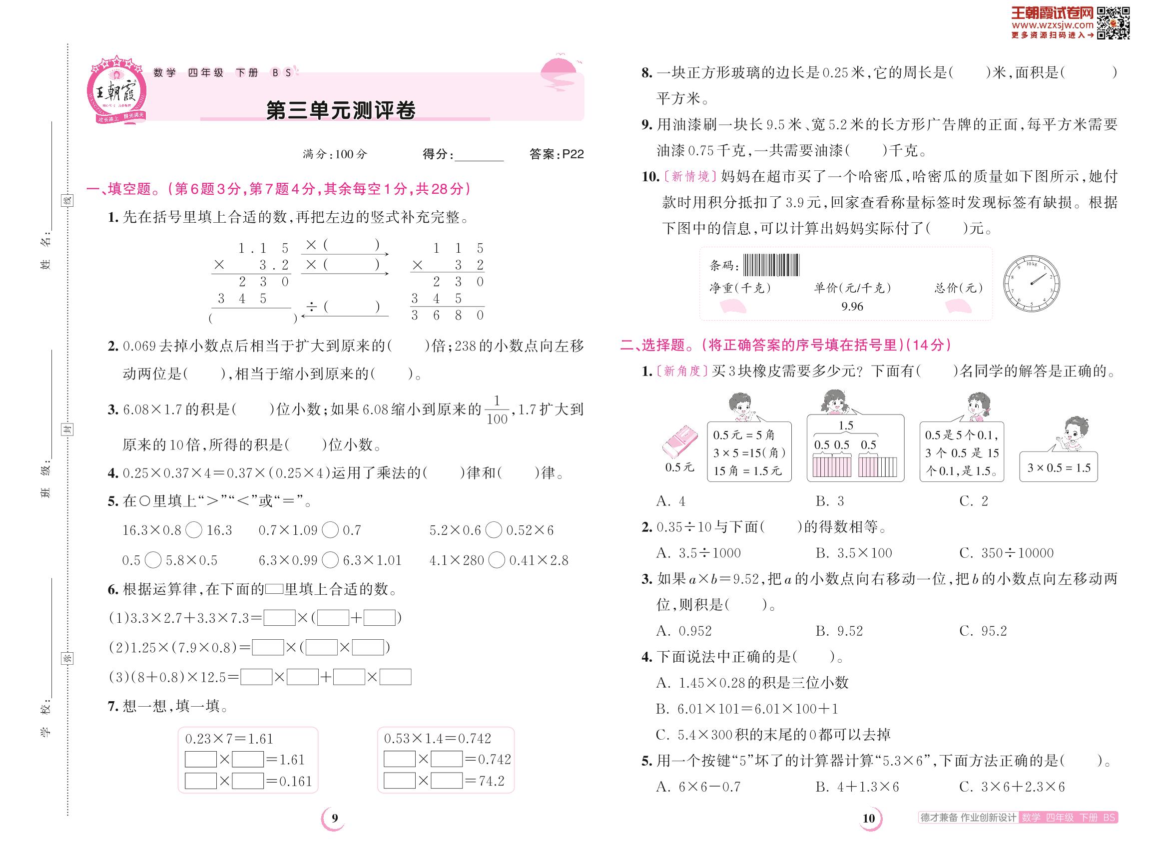 四年级数学北师版下册单元卷