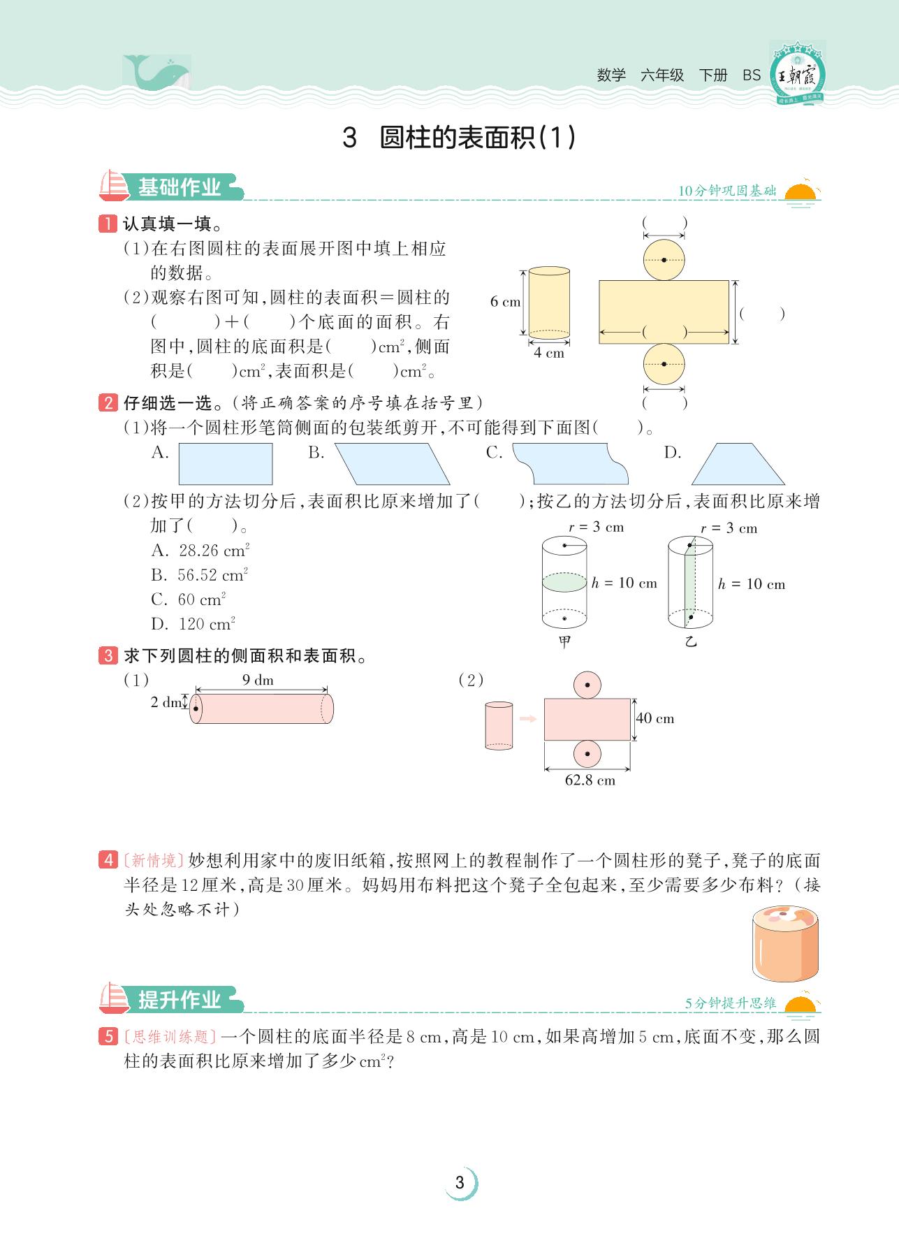 2023下册六年级数学北师版 第一单元 圆柱与圆锥——3 圆柱的表面积(1)