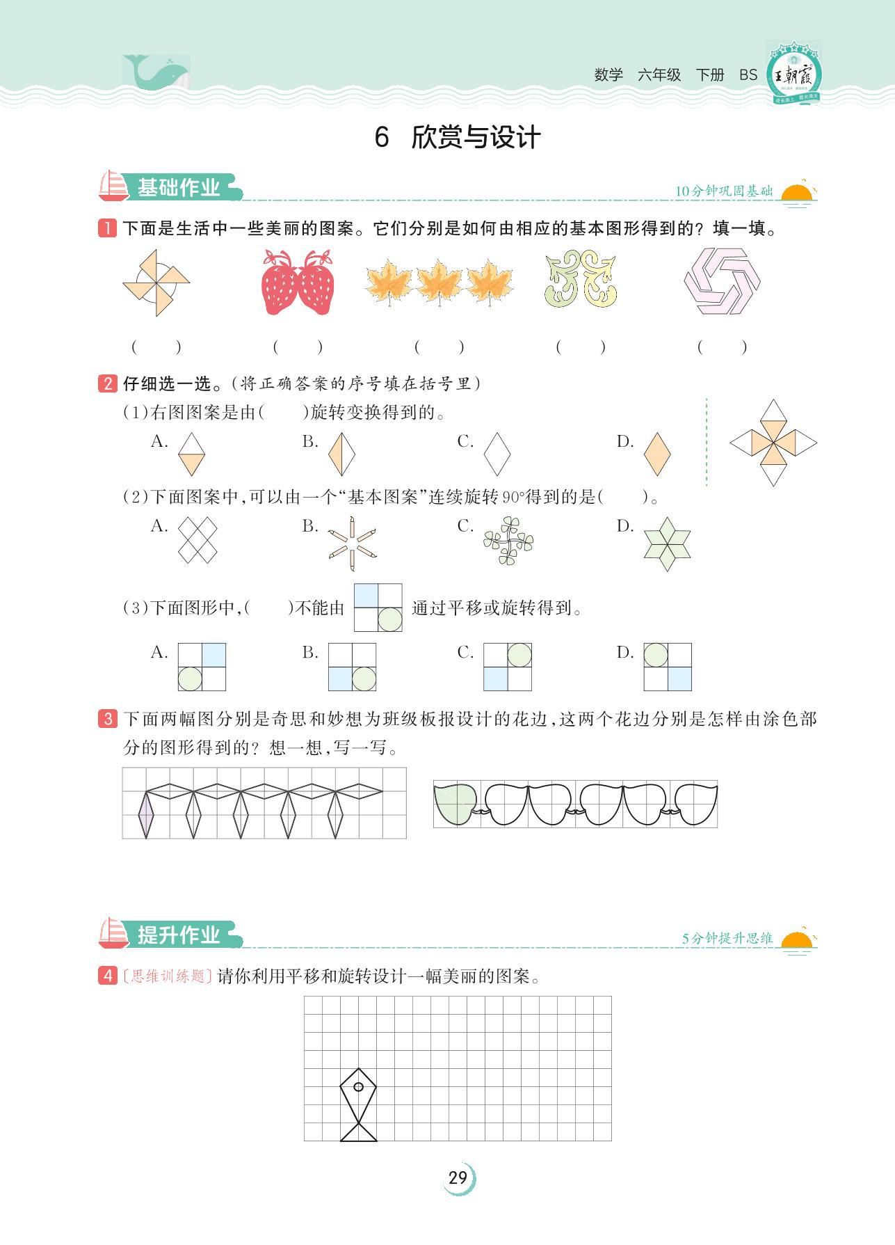2023下册六年级数学北师版 第三单元 图形的运动——6 欣赏与设计