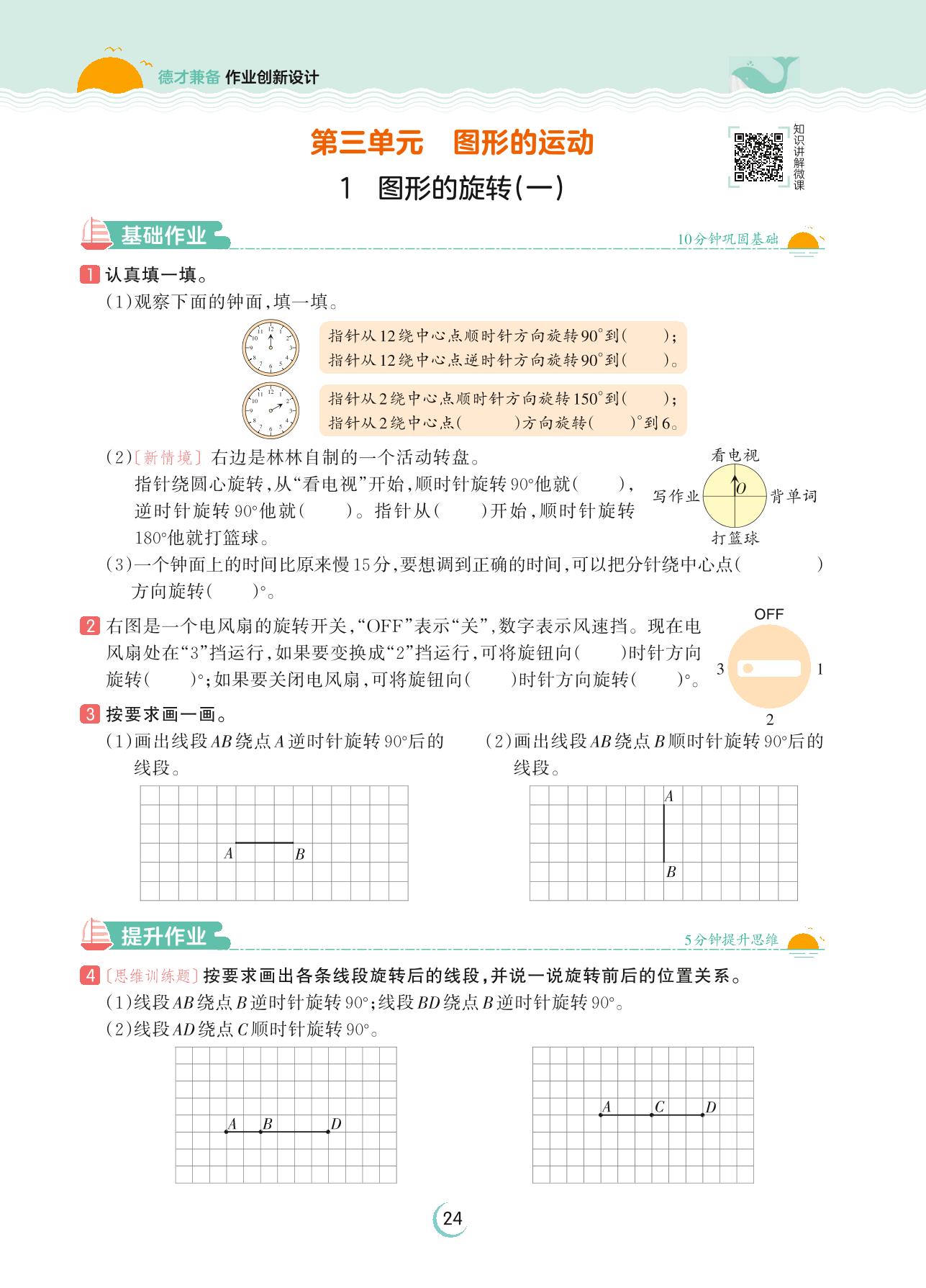 2023下册六年级数学北师版 第三单元 图形的运动——1 图形的旋转(一)
