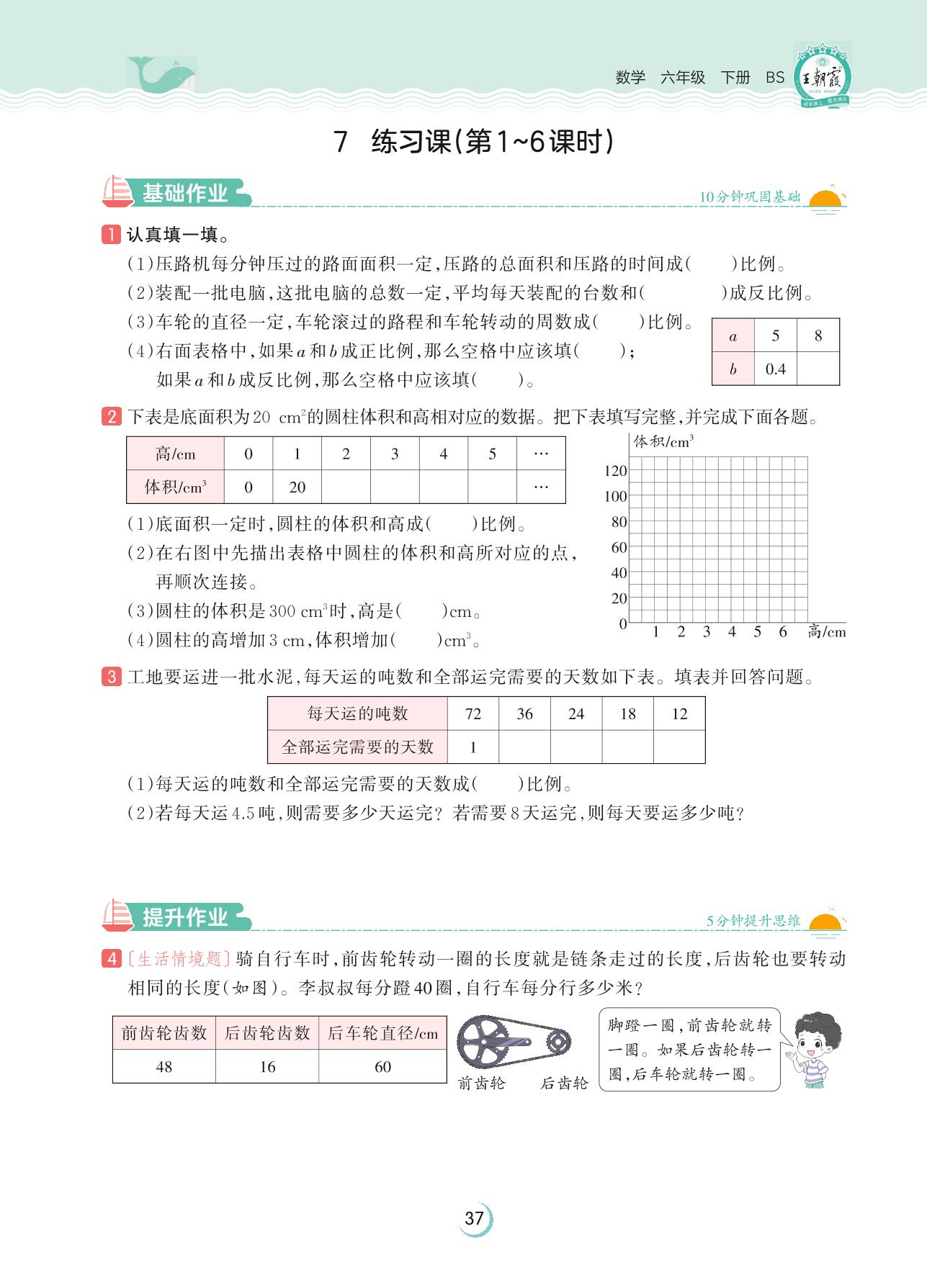 2023下册六年级数学北师版 第四单元 正比例与反比例——7 练习课(第1~6课时)