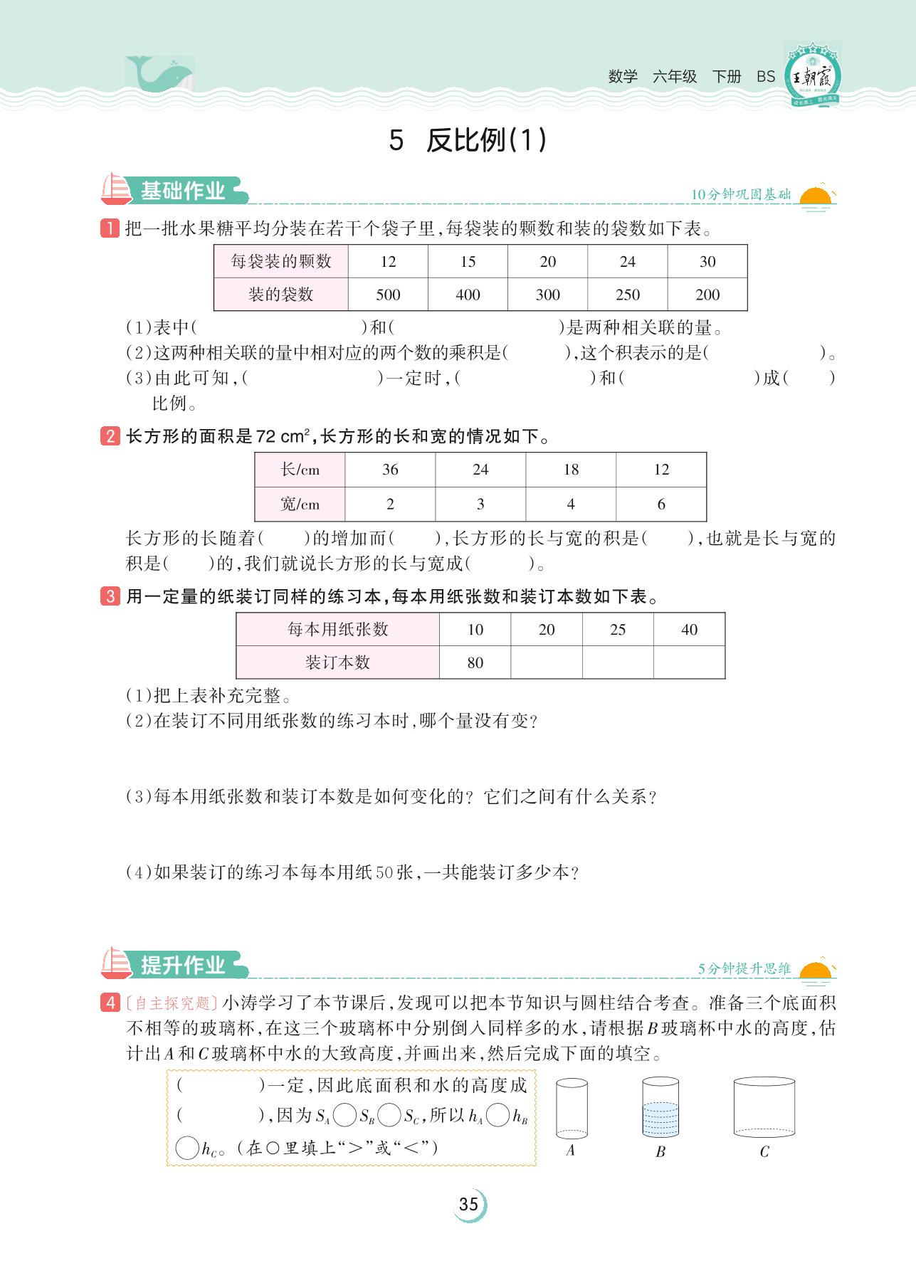 2023下册六年级数学北师版 第四单元 正比例与反比例——5 反比例(1)
