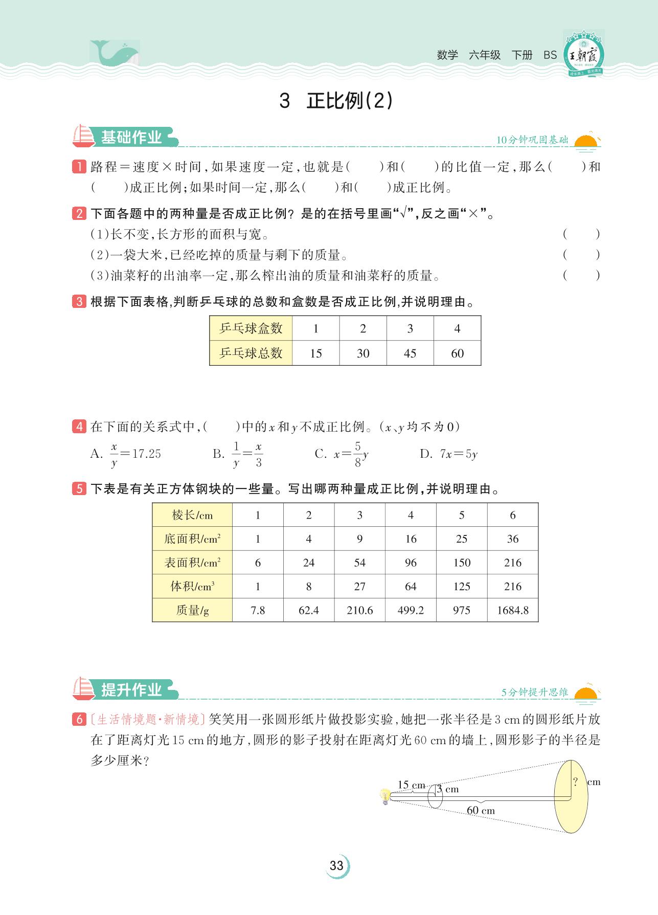 2023下册六年级数学北师版 第四单元 正比例与反比例——3 正比例(2)
